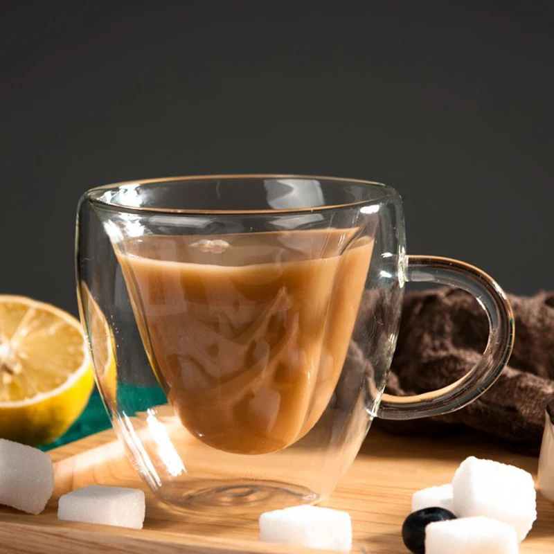 1 шт. с принтом сердце, Любовь в форме Стекло пар кружки с двойными стенками, Стекло кружка устойчивый Чай пивная кружка молока чашка для лимонного сока посуда для напитков