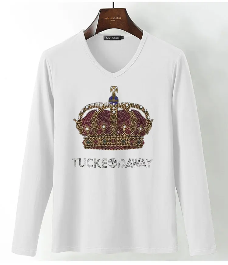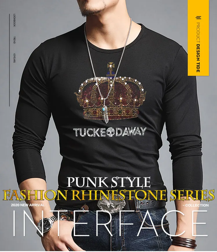 Новый Корона Стразы футболки Мужская брендовая модная мужская уличная майка с О-образным вырезом рубашка тонкий алмазный черные хлопковые футболки размера плюс 5XL