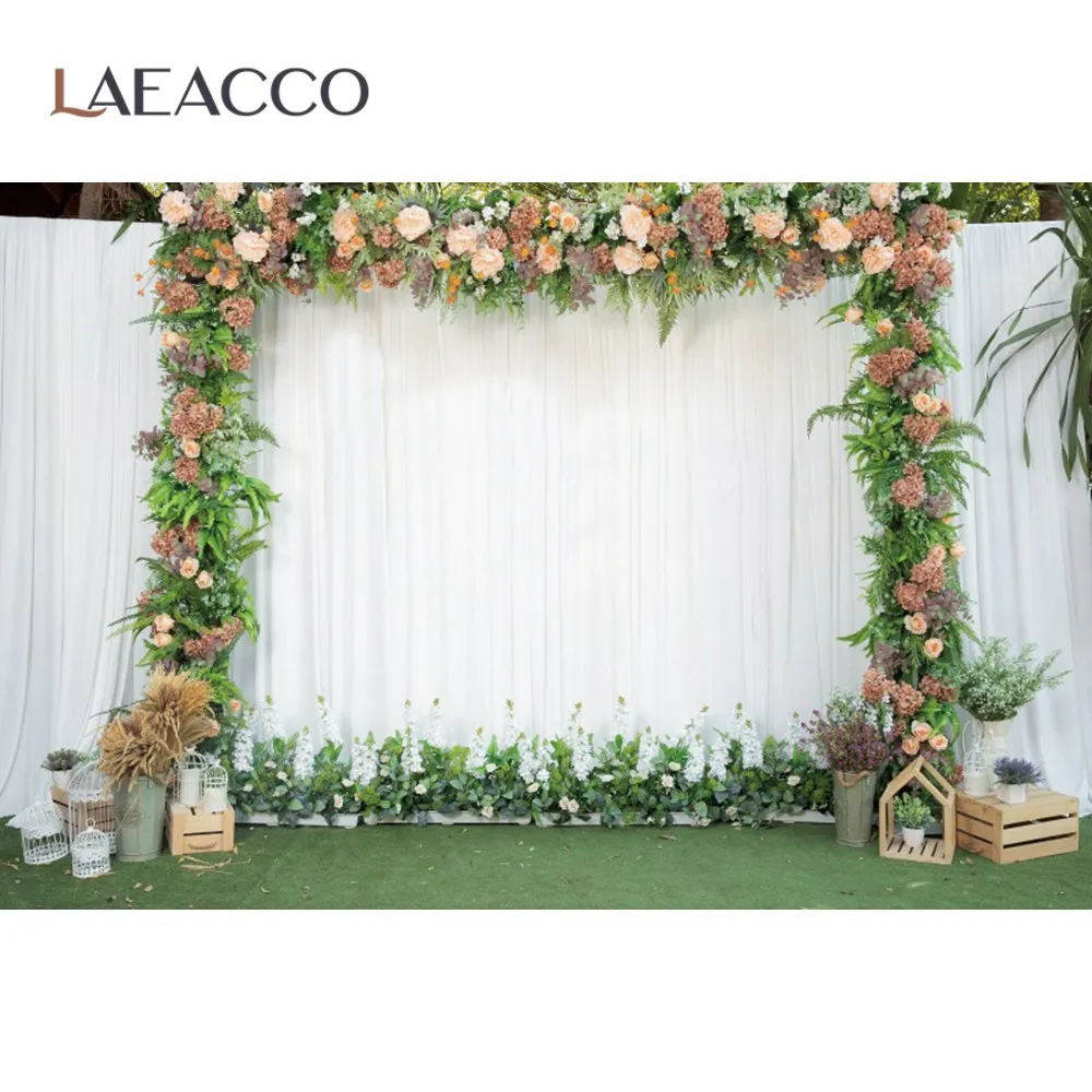 Laeacco зеленые весенние цветущие цветы фотостена венок серая занавеска сцена любовь портрет фото фон фотографические фоны