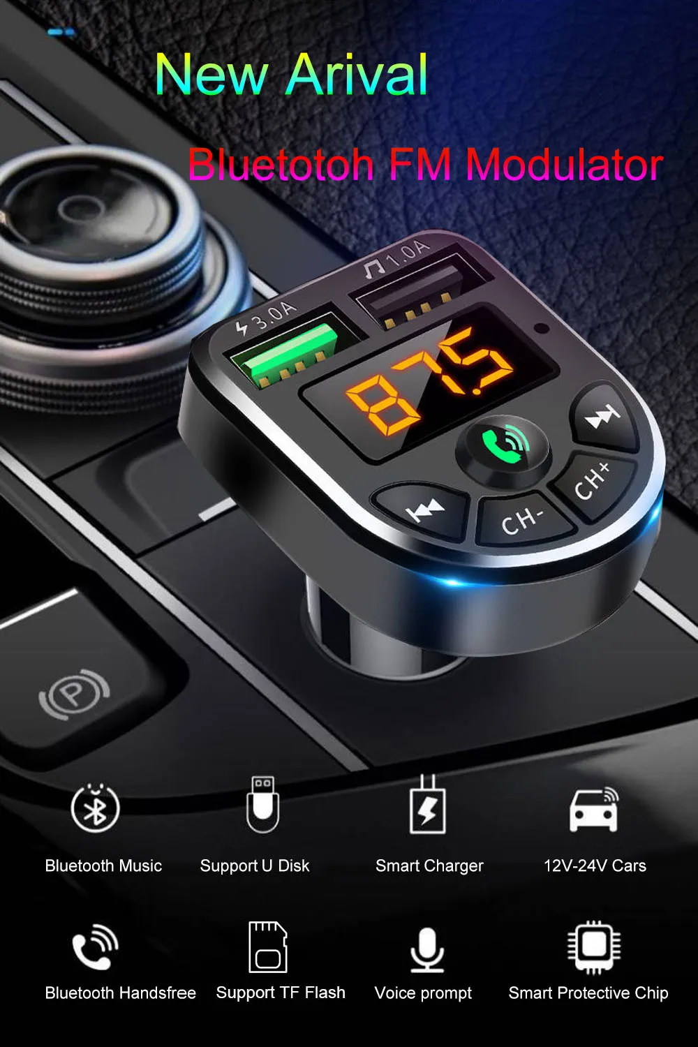 Bluetooth-модулятор Автомобильный с FM-трансмиттером 5,0 дюйма, 2 USB-порта