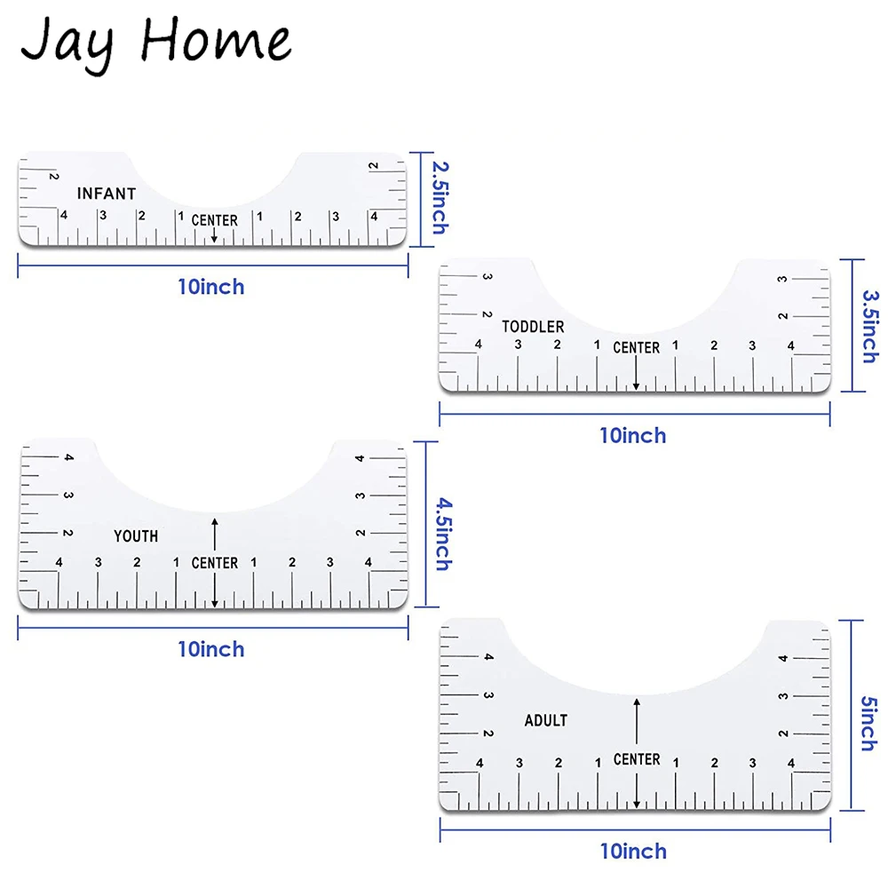 Линейка для футболок для мужчин и женщин, 4 шт., для выравнивания линейки, для молодежи и младенцев, руководство по футболке, центр линейка с дизайном, швейные инструменты