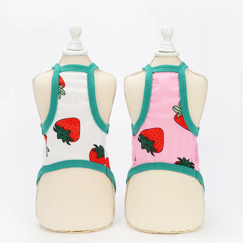 Жилет-слинг для собак с принтом клубники, летняя одежда для собак чихуахуа, милая рубашка для собак, забавная одежда для домашних животных без рукавов, жилет для собак из полиэстера