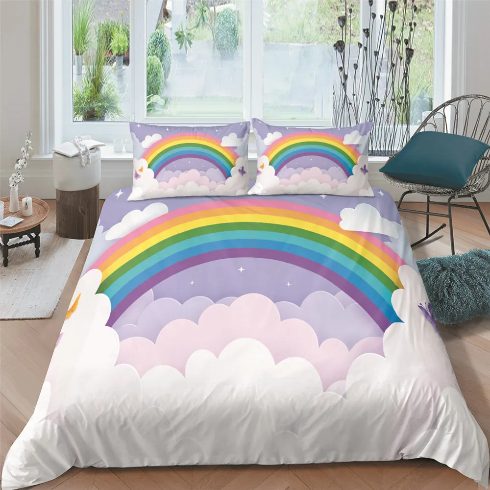 Комплекты постельного белья с радужным облаком, пододеяльник, одинарный, двуспальный, королевский размер, детская одежда, одеяло, покрывало, постельное белье без простыни