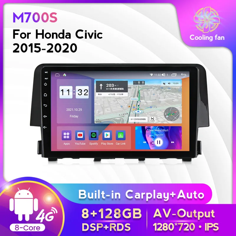 Автомагнитола 9 дюймов с IPS-экраном 1280*720, Android 10, мультимедийная стереосистема для Honda Civic 2016, 2017, 2018, 2019, Carplay, 4G, Lte, Wi-Fi