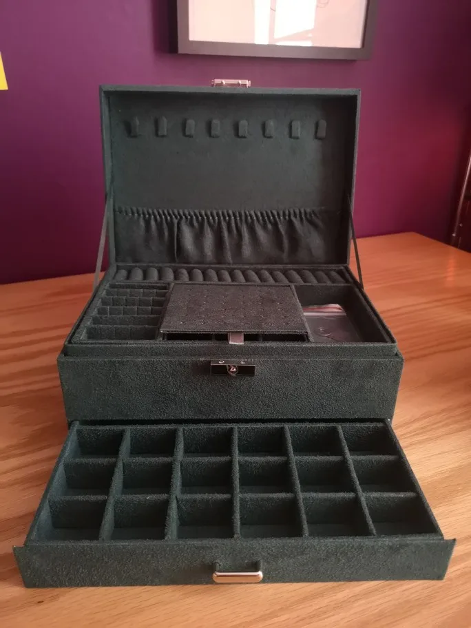 muy bonito, calidad precio muy buena, buenas terminaciones, y de gran capacidad, recomiendo para tener las joyas ordenadas.