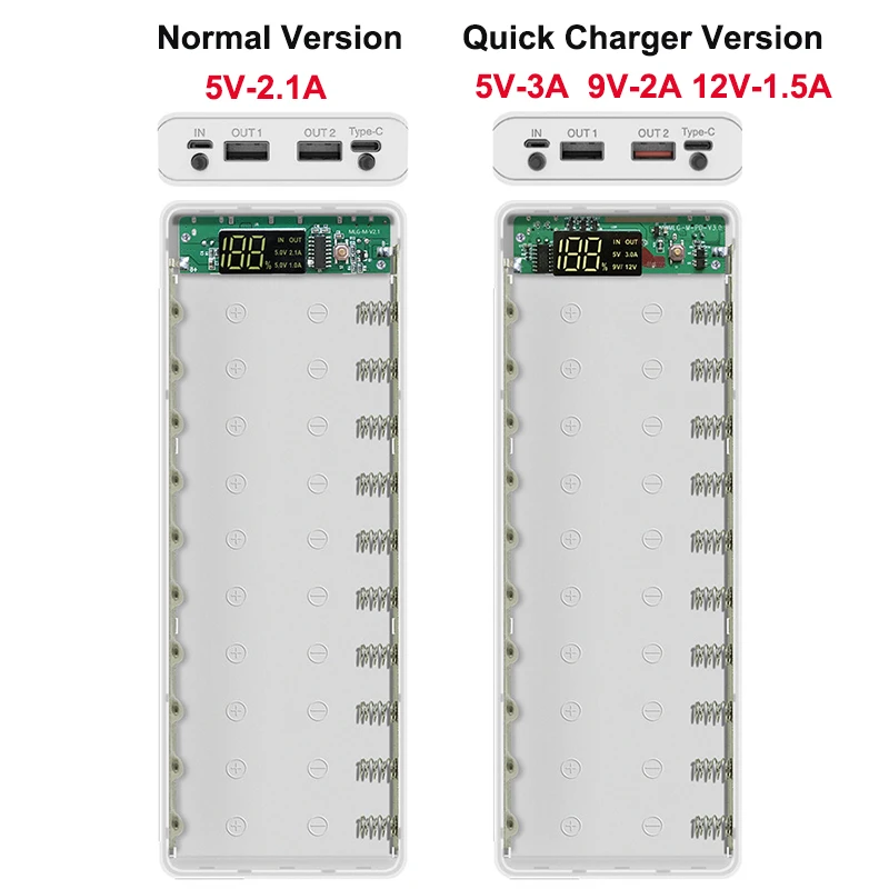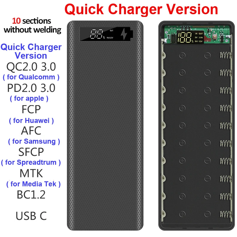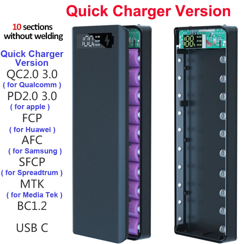 Светодиодный Дисплей DIY 10x18650 Мощность внешнего аккумулятора, двойной USB мобильный телефон Зарядное устройство 18650 Батарея держатель зарядным устройством PD QC3.0 Quick Charge