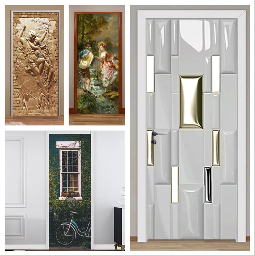 Наклейки на дверь с рельефным изображением белого Куба, размер, самоклеящиеся обои, двери, сделай сам, обновление, водонепроницаемый плакат для спальни, современное искусство