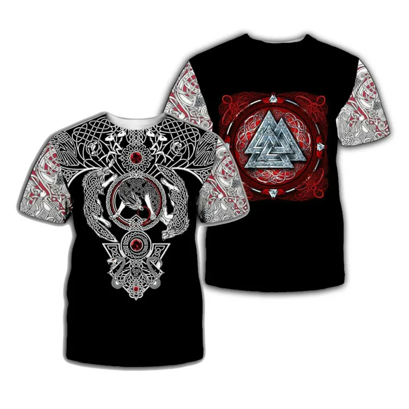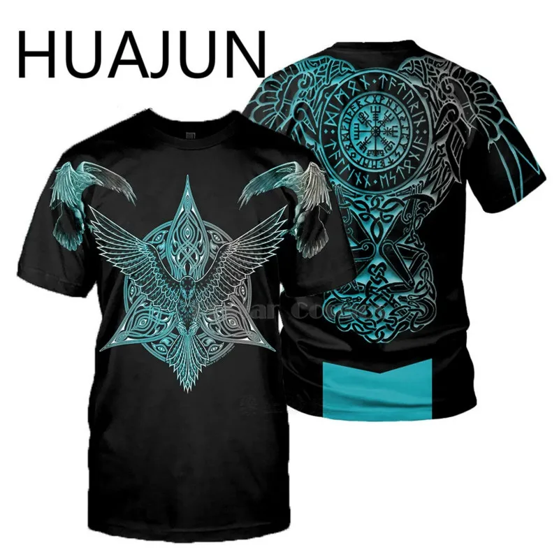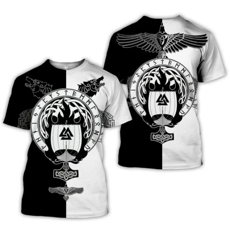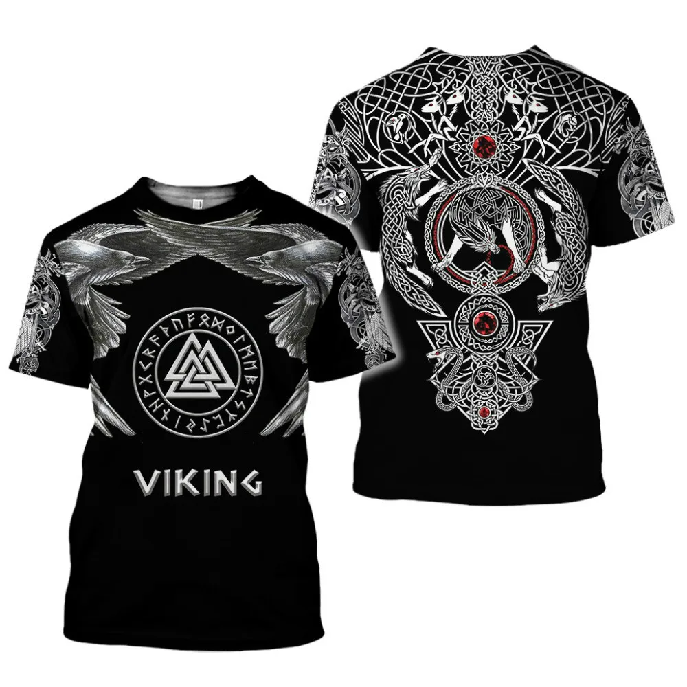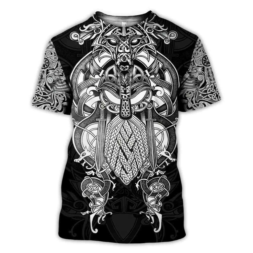 Футболка мужская с 3D принтом тату, свободная и унисекс футболка с коротким рукавом, в скандинавском стиле, уличная одежда, лето 2021