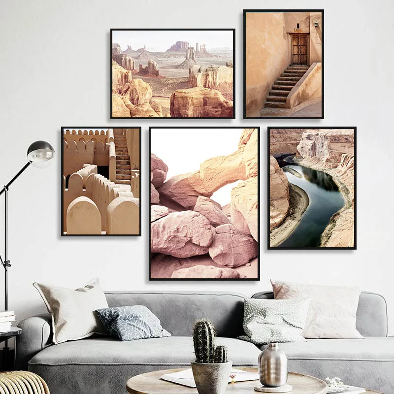 Марокканский розовый кактус пустыня верблюд пейзаж настенная Картин...