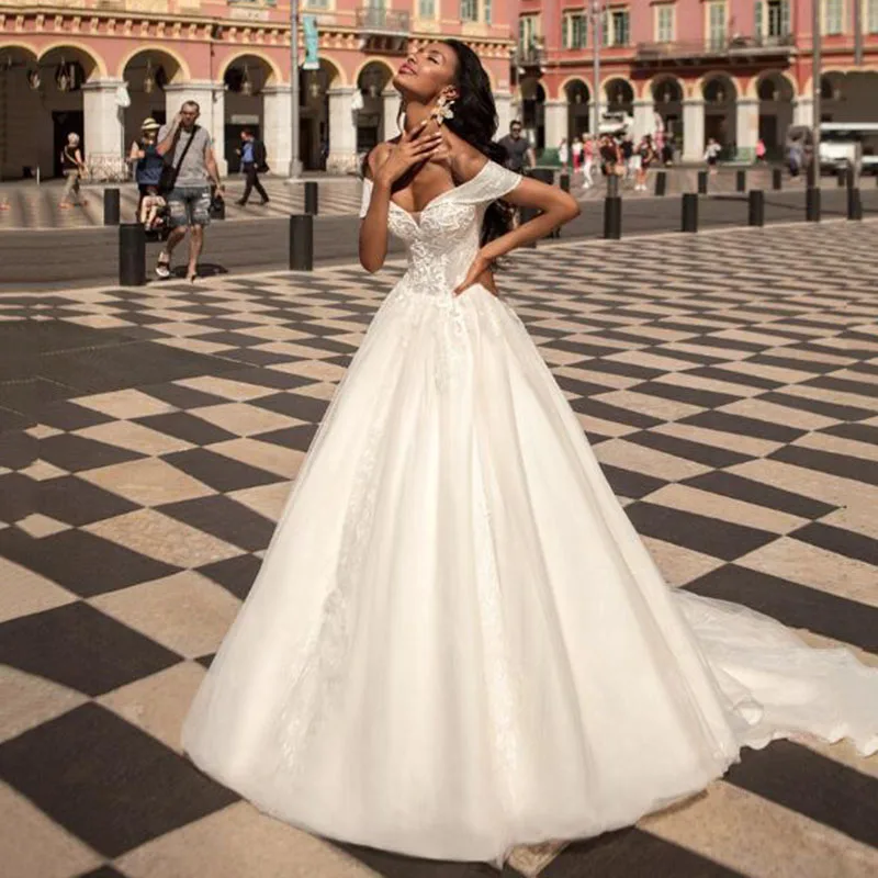 Свадебное платье принцессы LORIE, кружевное платье-трапеция с аппли...