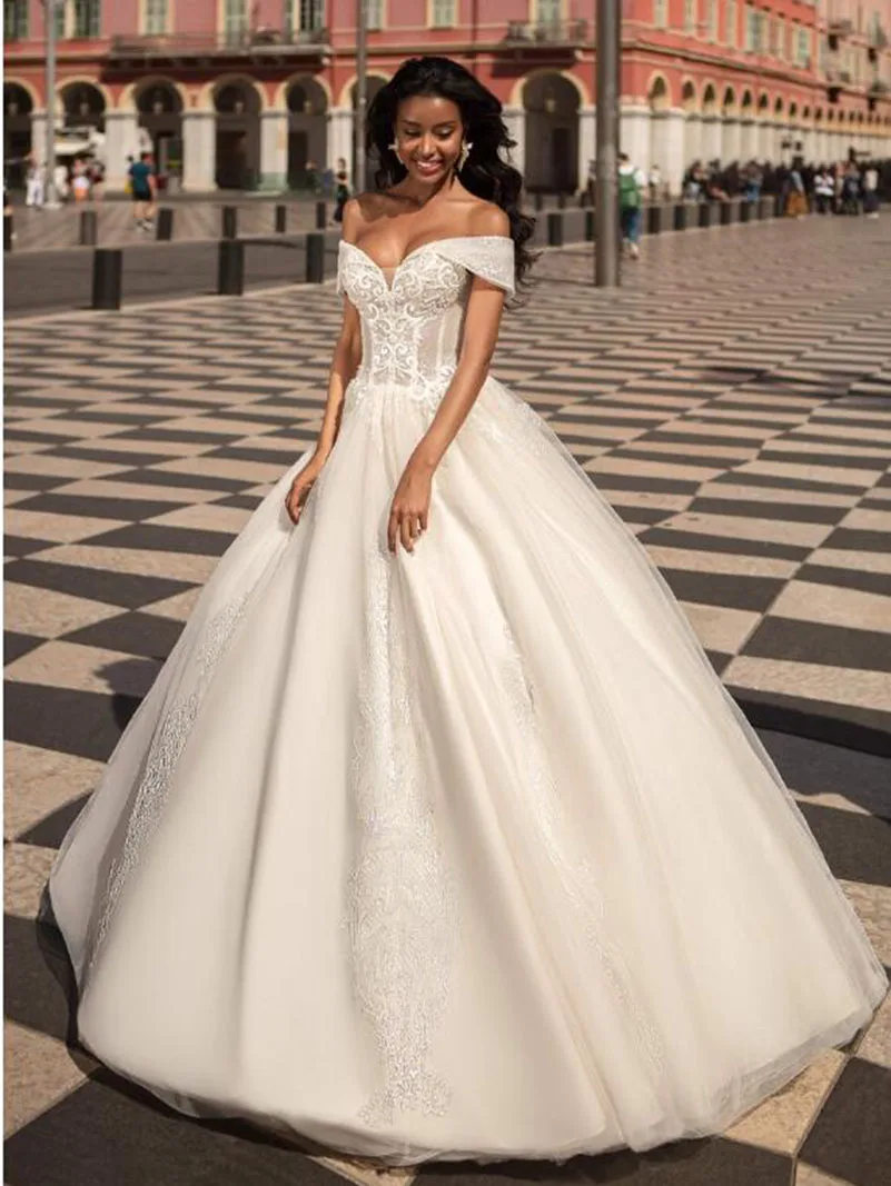 Роскошное бальное платье, белое свадебное платье с кружевной апплик...