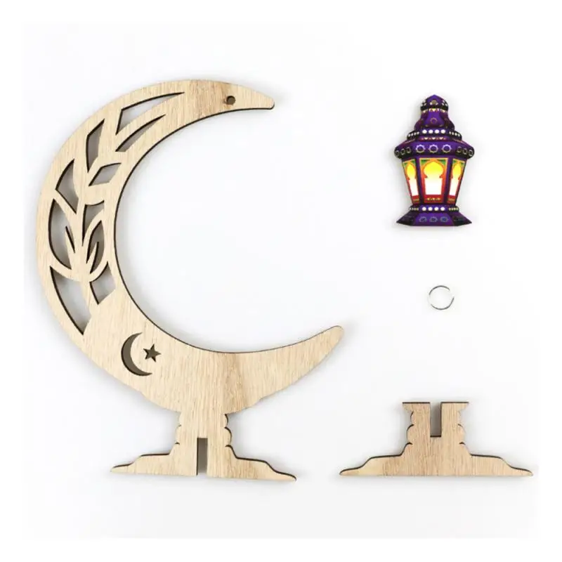 Деревянный ИД Мубарак Рамадан гулбанг Луна окрашенный фонарь украшение стола ремесла