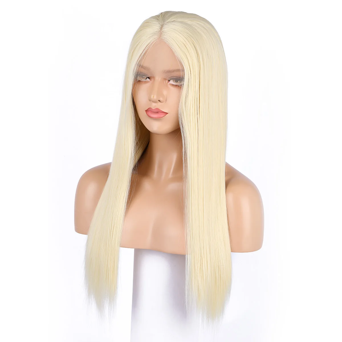 613 блонд мед 22 24 26 дюймов длинные прямые 13x4 прозрачные бесклеевые кружевные передние парики синтетические для черных женщин из предварительно выщипанного волокна
