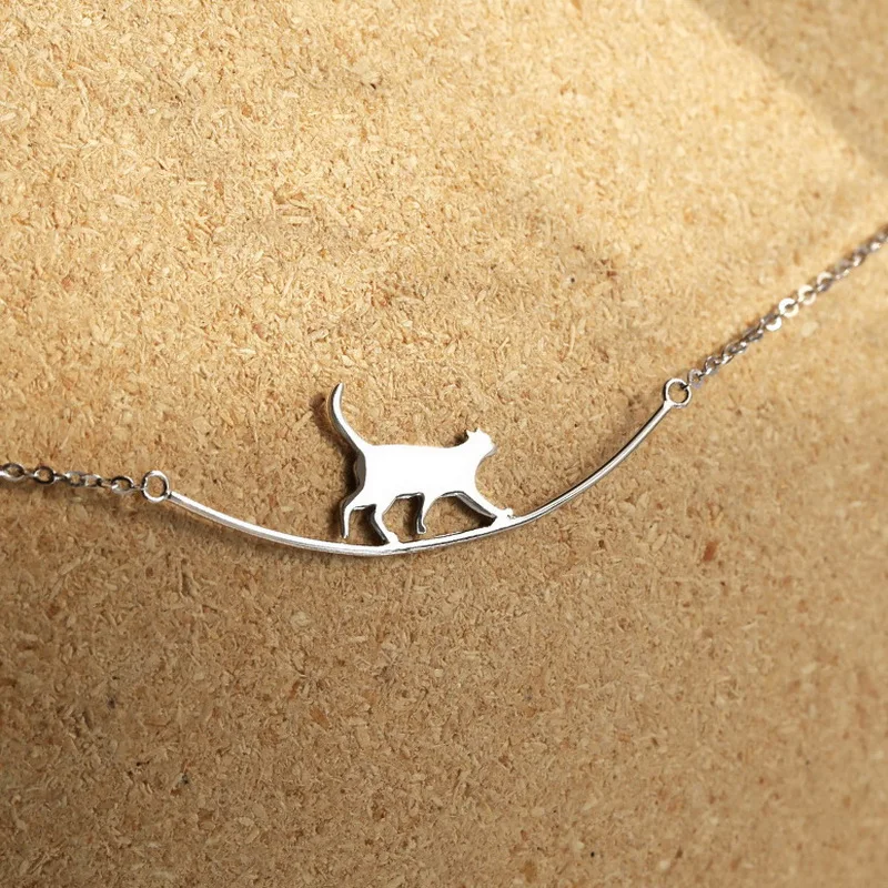 Изогнутое ожерелье с котом из серебра 925 пробы, простая индивидуал...