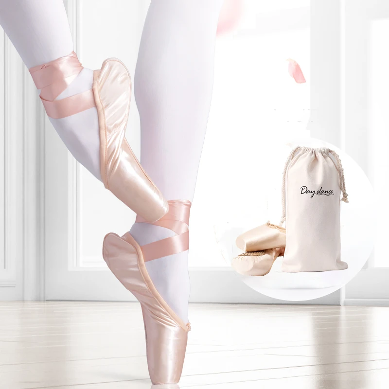 Женская атласная балетная обувь, профессиональные пуанты для балета, женская обувь для девочек с бесплатными сумочками для обуви