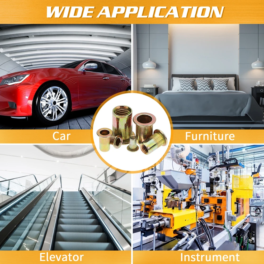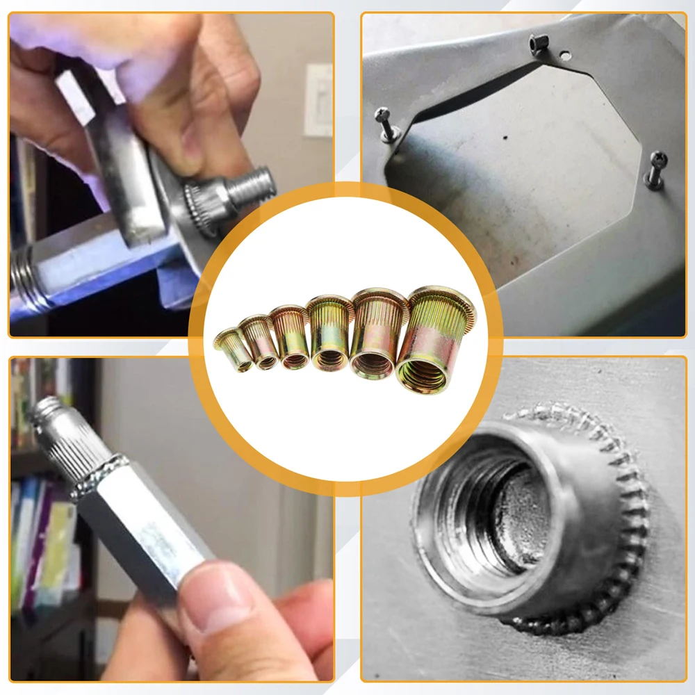 175 шт., заклепочные гайки из углеродистой стали M3 M4 M6 M8 M10, заклепочные гайки с плоской головкой, набор заклепочных гаек