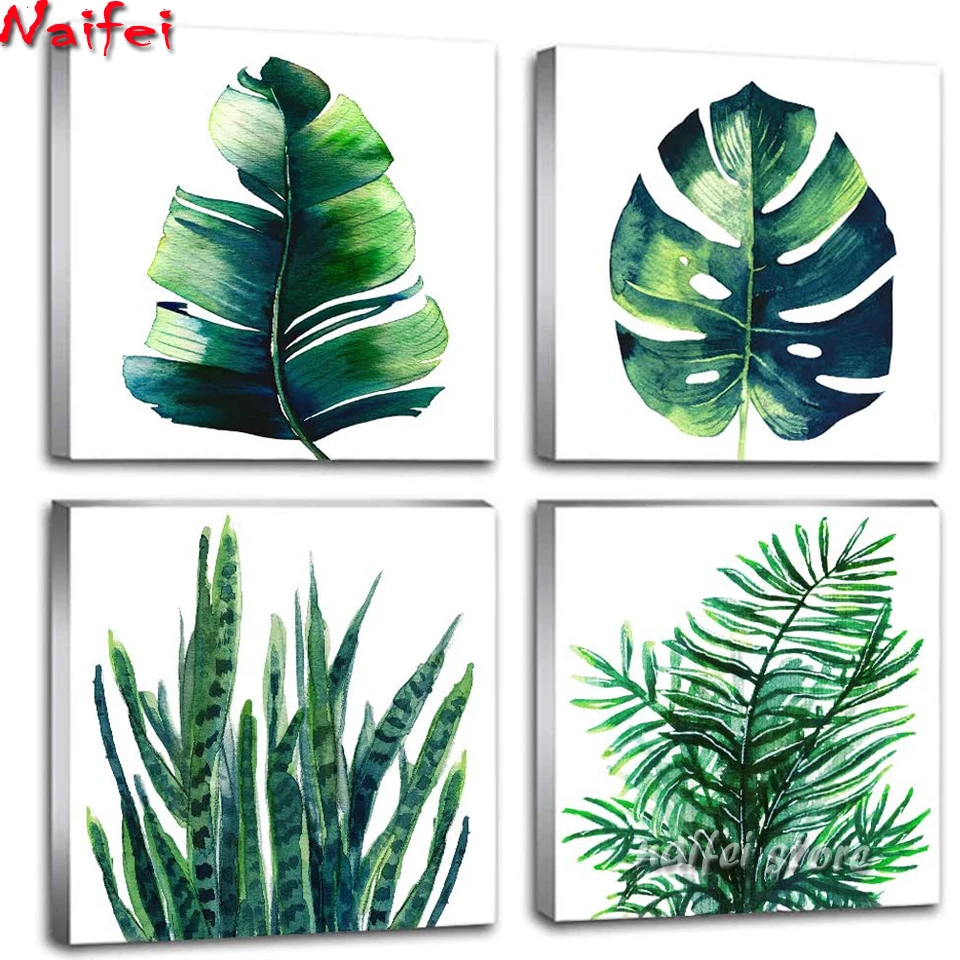Алмазная вышивка, натуральная алмазная живопись, полноразмерная Алмазная мозаика, зеленые листья, искусство на стене, растения, Пальмовые Листья, картины, полный дисплей