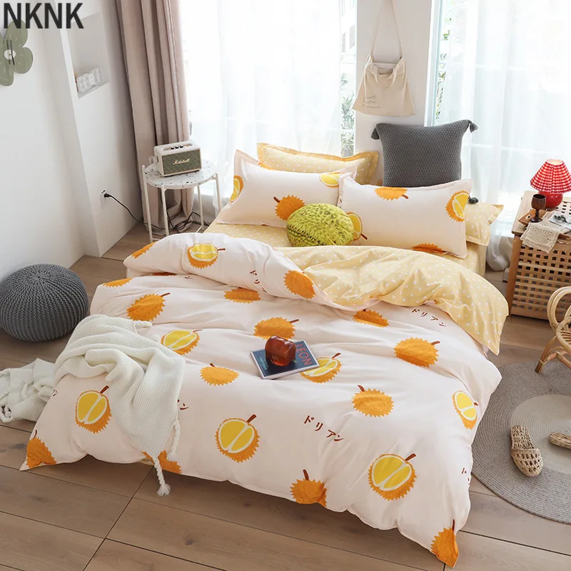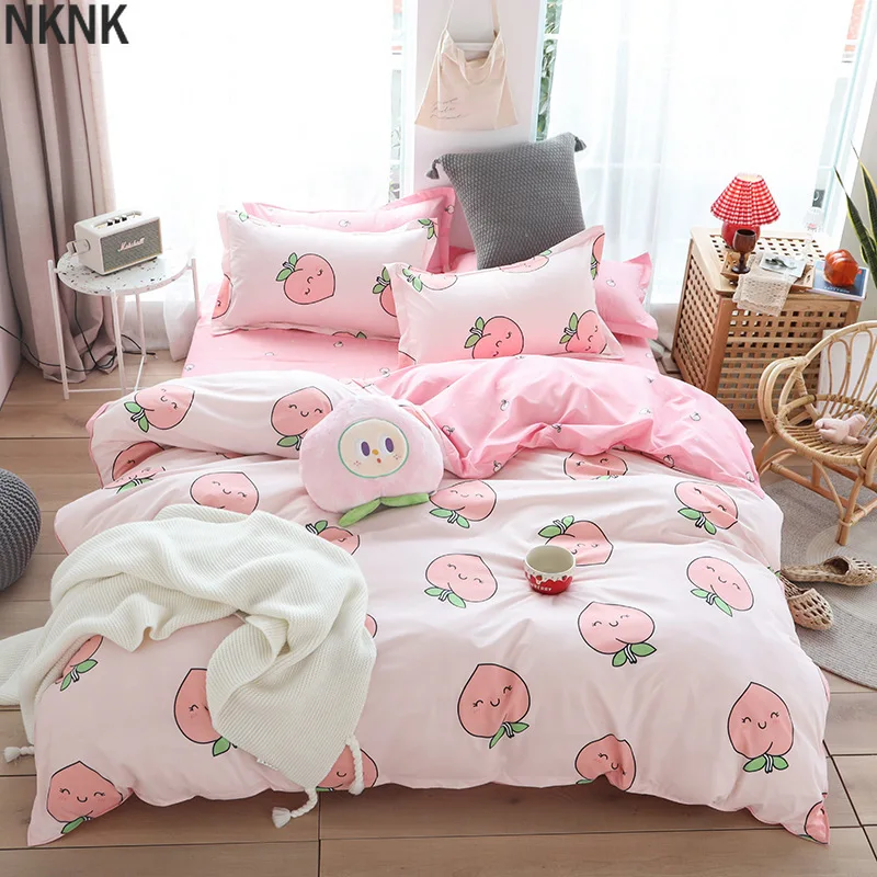 Постельное белье с персиковым принтом, красивый комплект постельного белья из 34 предметов, домашний текстиль, пододеяльник с фруктами, простыня, подарок для девочек, размеры queenking