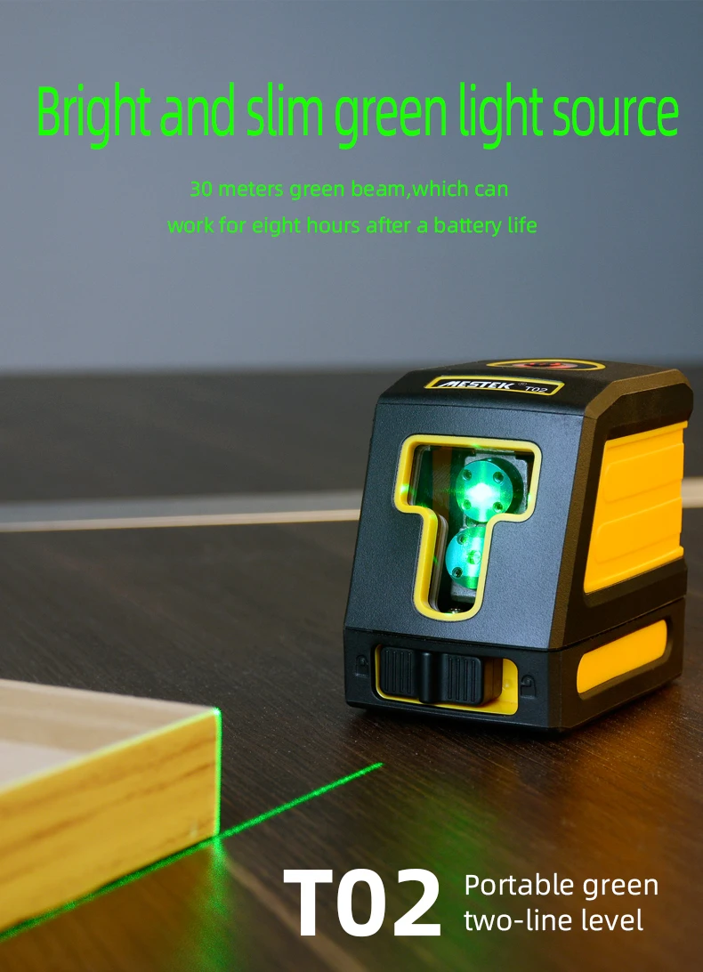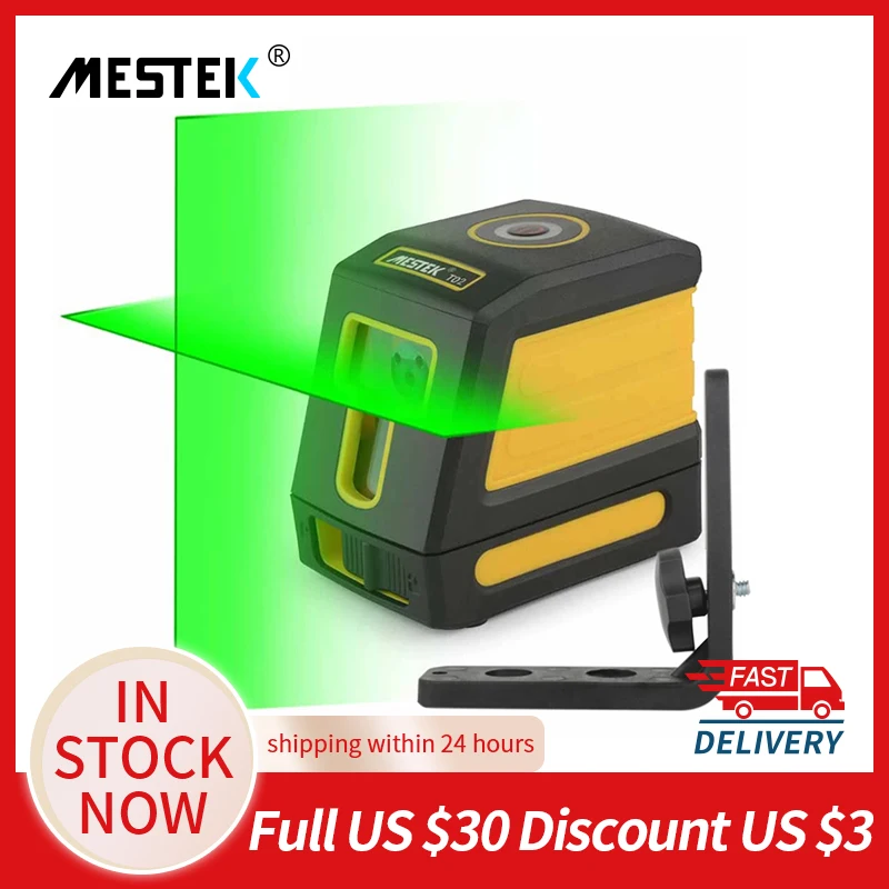 Лазерный уровень MESTEK, нивелир с 2 зелеными линиями, самонивелирующийся, вертикальный, горизонтальный, перекрестный, красный луч, измерительный инструмент