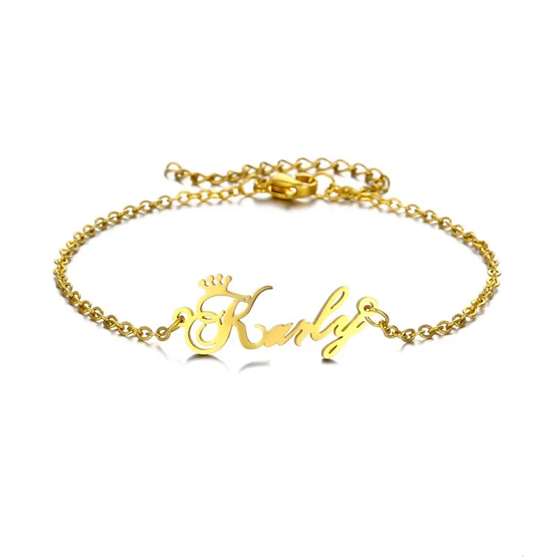 Индивидуальный именной золотистый браслет, нержавеющая сталь, ручна...