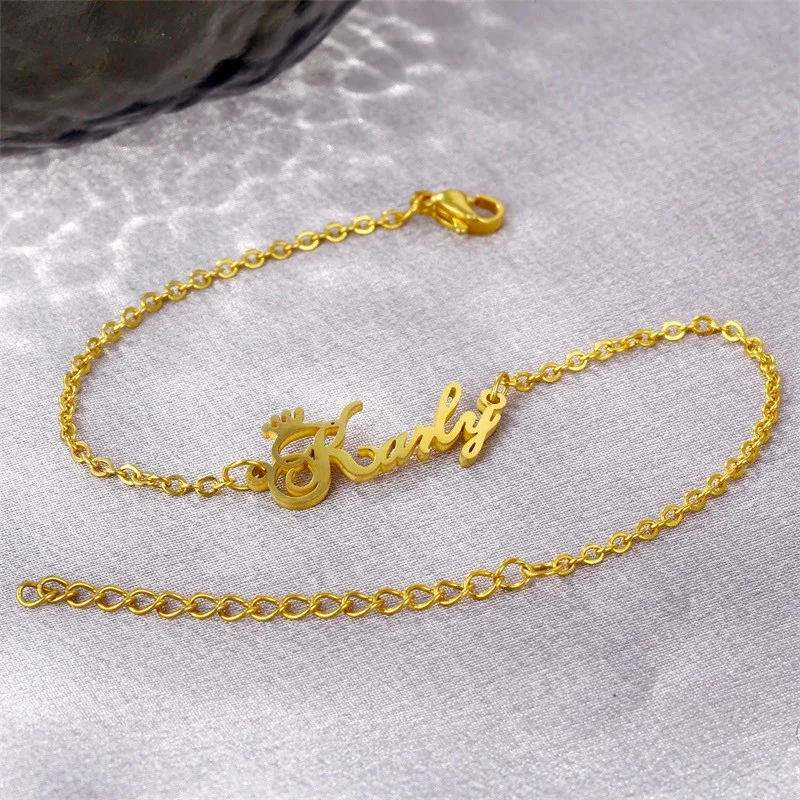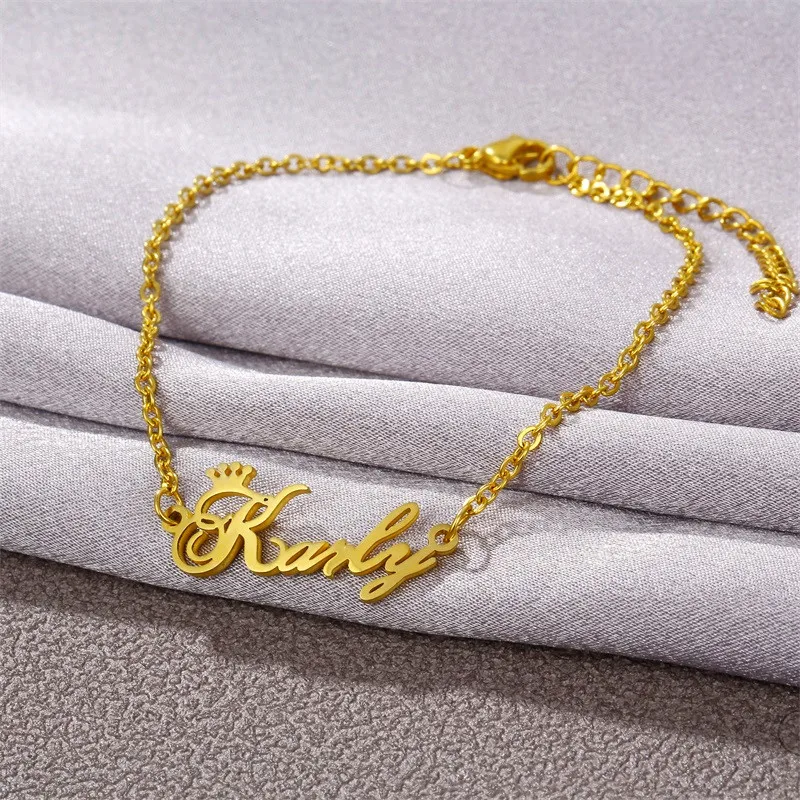 Браслеты на ногу женские из нержавеющей стали, анклеты золотого и серебряного цвета с именем под заказ, ювелирные украшения