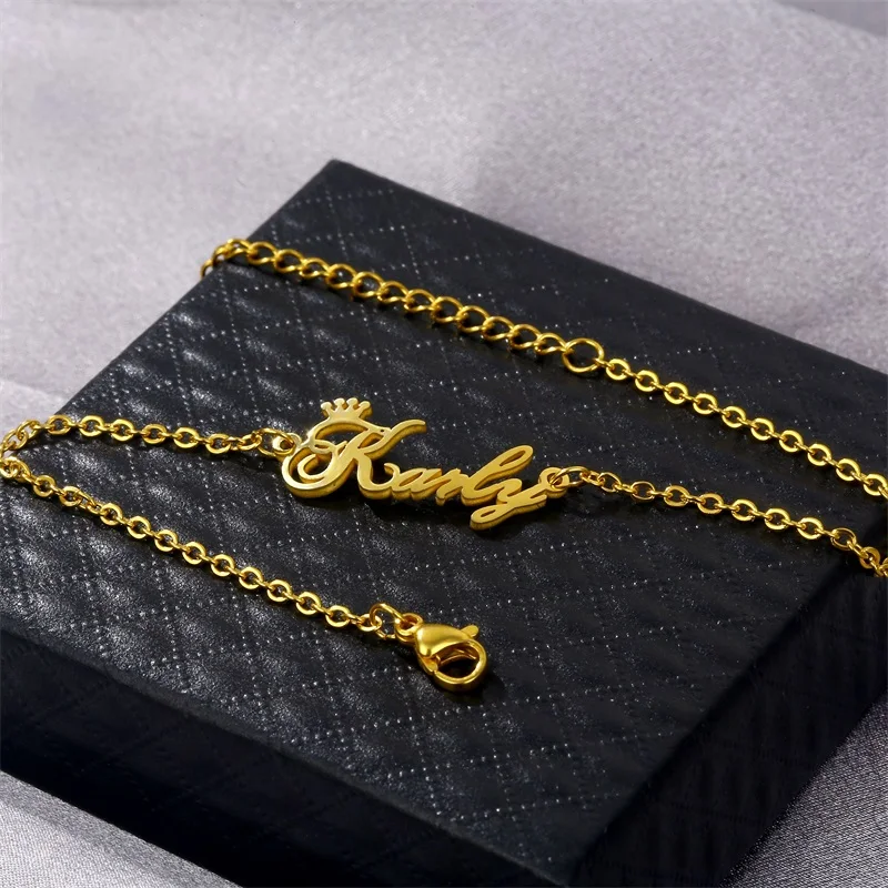 Ожерелье с именем на заказ из нержавеющей стали с золотым наполнением