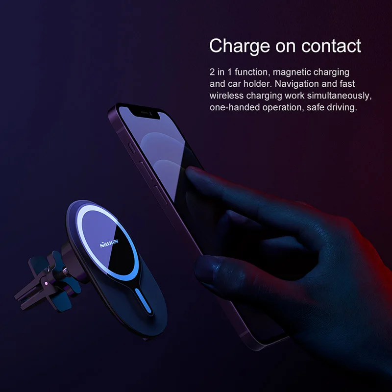 NILLKIN 7,5 Вт Магнитная Автомобильная Беспроводная зарядная подставка для iPhone 12 13 Pro Max Беспроводное зарядное устройство Автомобильный держатель подходит для чехла Magsafe