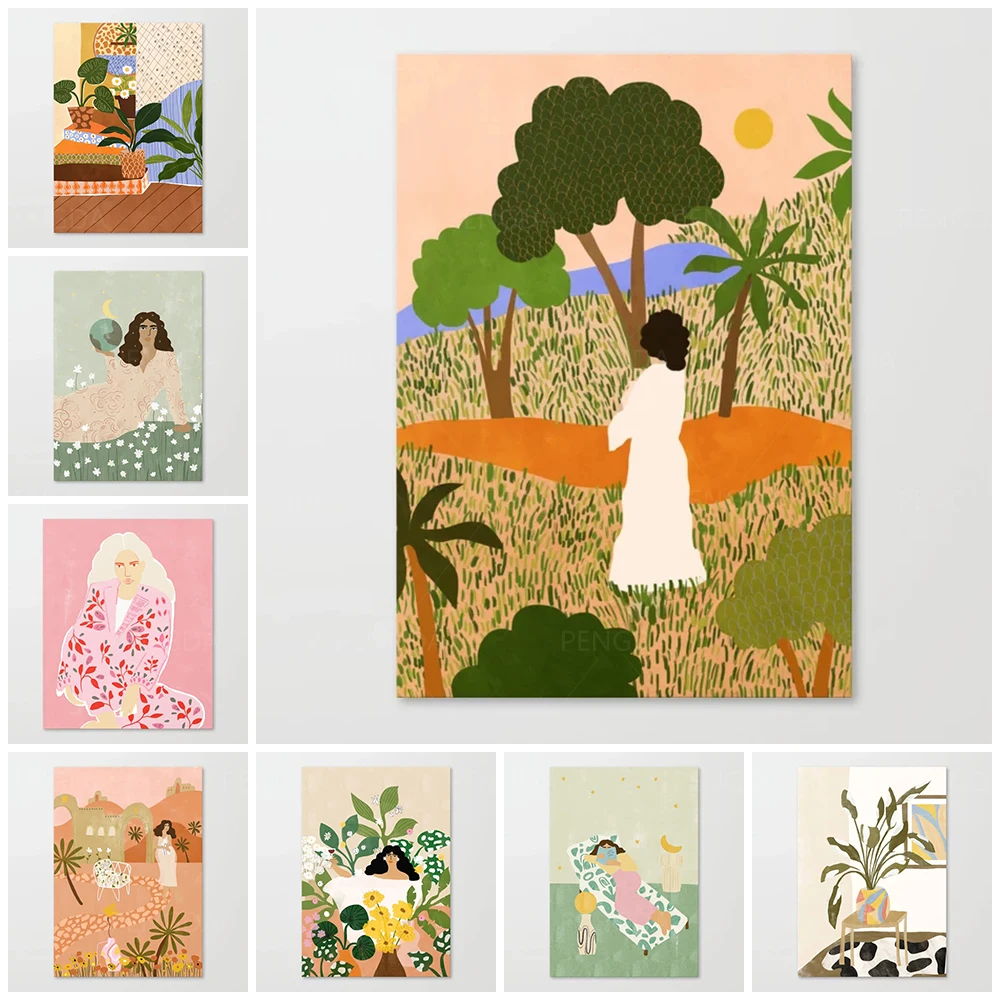 Декоративный настенный постер в стиле сафари для дома, винтажные картины с принтом женщины, модульные картины с лестницей, цветные плакаты без рамки