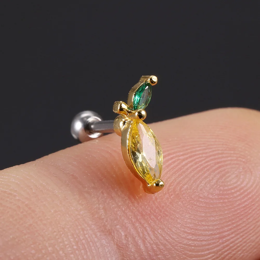 Женские серьги-гвоздики Goth с фианитами, маленькие Украшения для Пирсинга Хряща фруктов, банана, яблока, вишни, завитка ушной раковины, 1 шт.