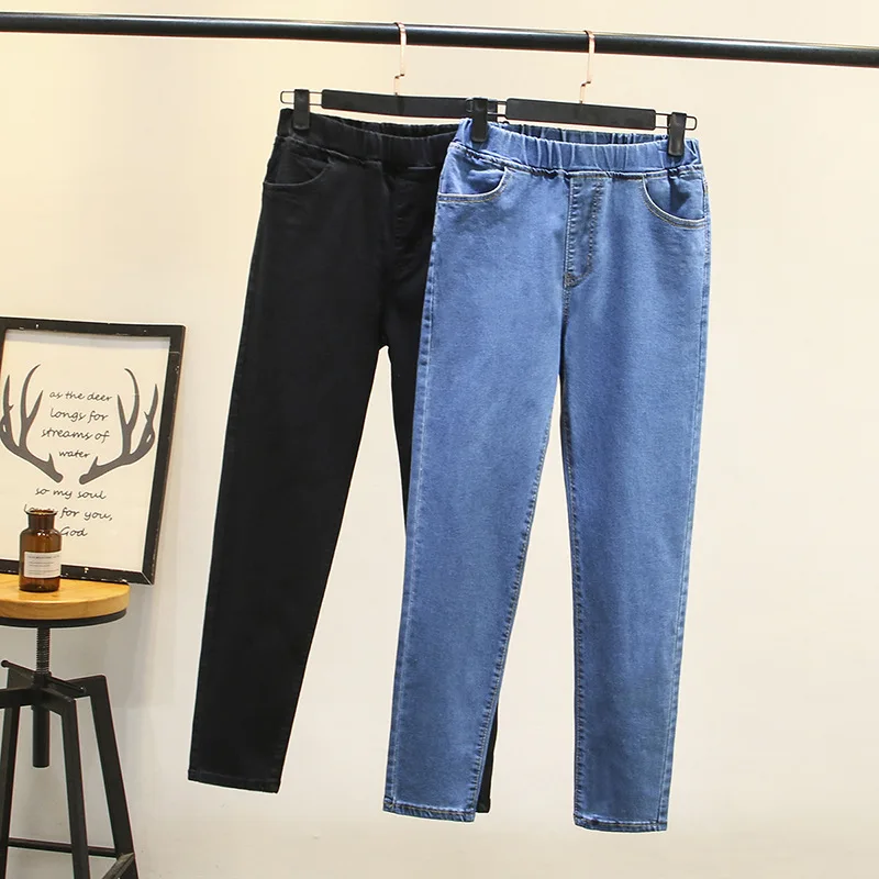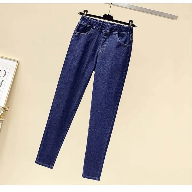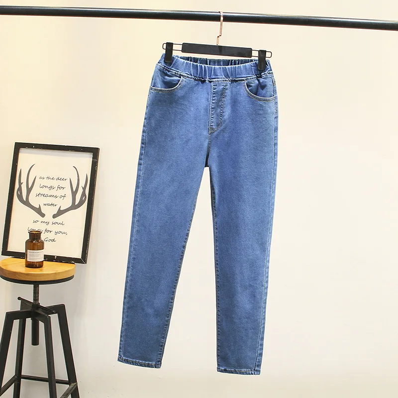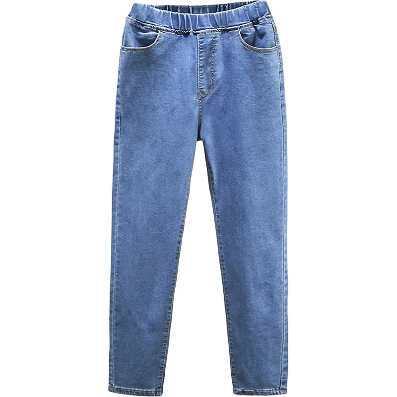 Джинсы женские в стиле ретро, брюки из денима стрейч с завышенной талией, узкие брюки с эластичным поясом, S-6XL, голубые, 2021