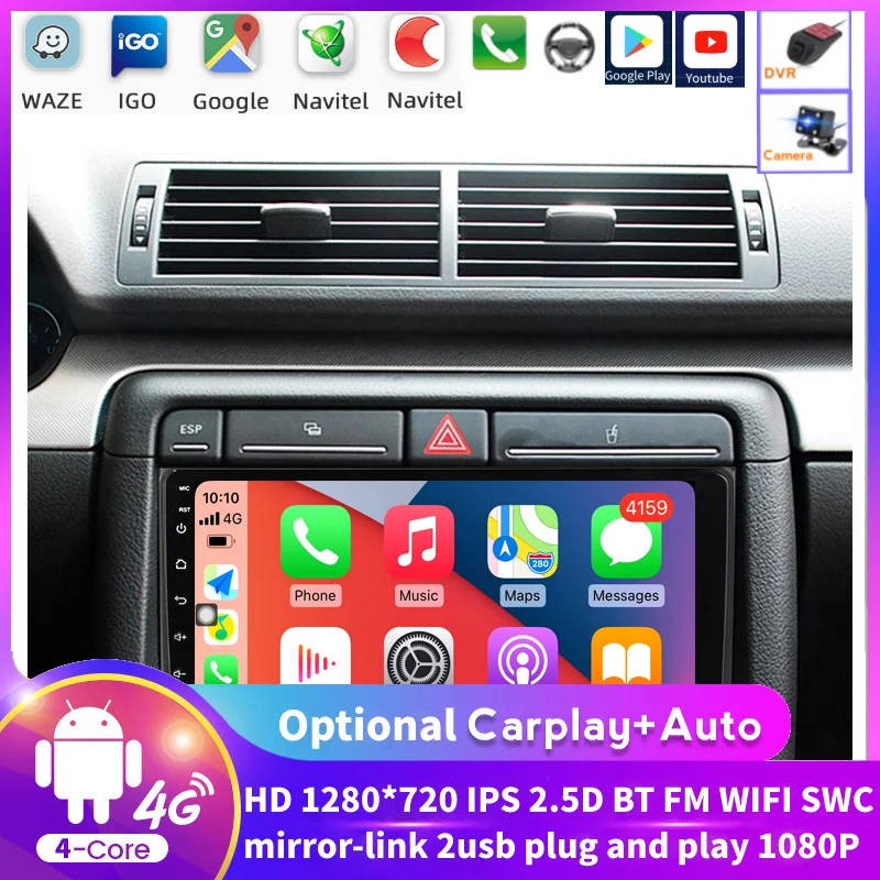 Автомагнитола 2000 х720, HD, Android, 2din, мультимедийный видеоплеер для Audi A4 2001, 2002, 2003, 2004, 2005, 2009-, GPS-навигация, аудио