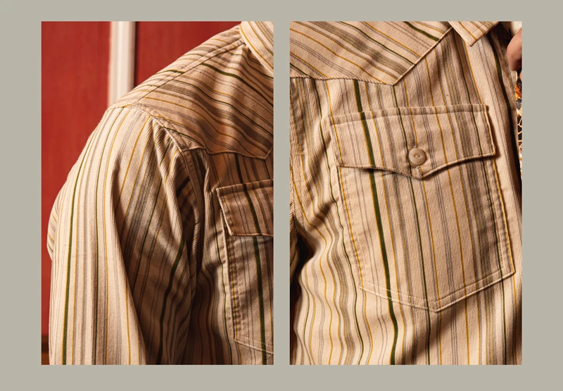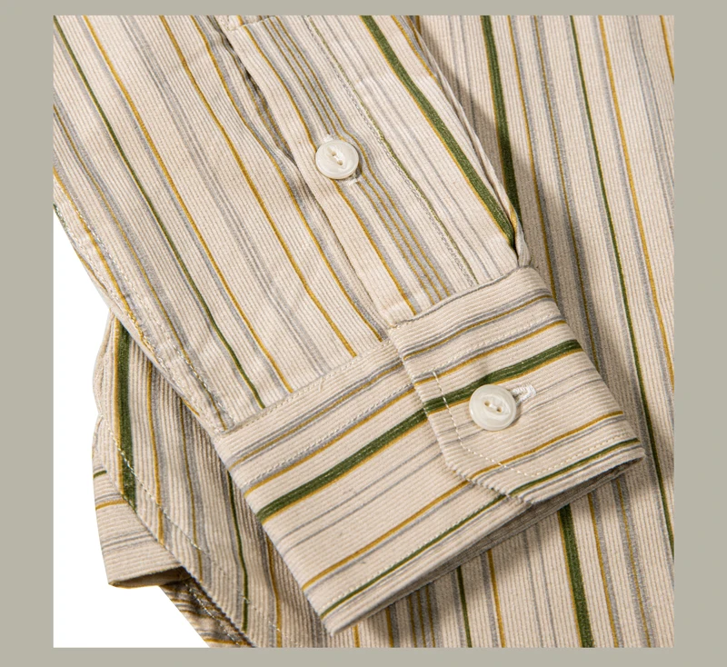 Slim приталенная рубашка из качественного вельвета Yoke хомут в западном стиле ⦁ Разноцветный узор в полоску ⦁ На пуговицах точки воротника ⦁ Длинные рукава с манжетами на пуговицах ⦁ Два нагрудных кармана на пуговицах ⦁ 100% хлопок