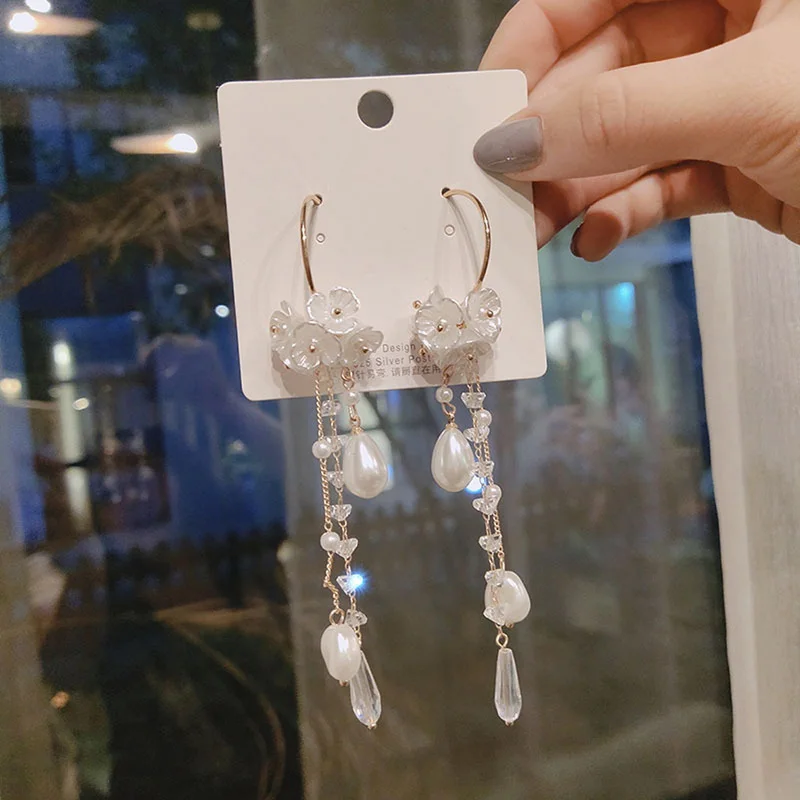 Корейские модные висячие серьги в виде кота, розы, цветка, кисточки для женщин, кристалл, жемчуг, Висячие Асимметричные ювелирные изделия для свадебной вечеринки, милый подарок