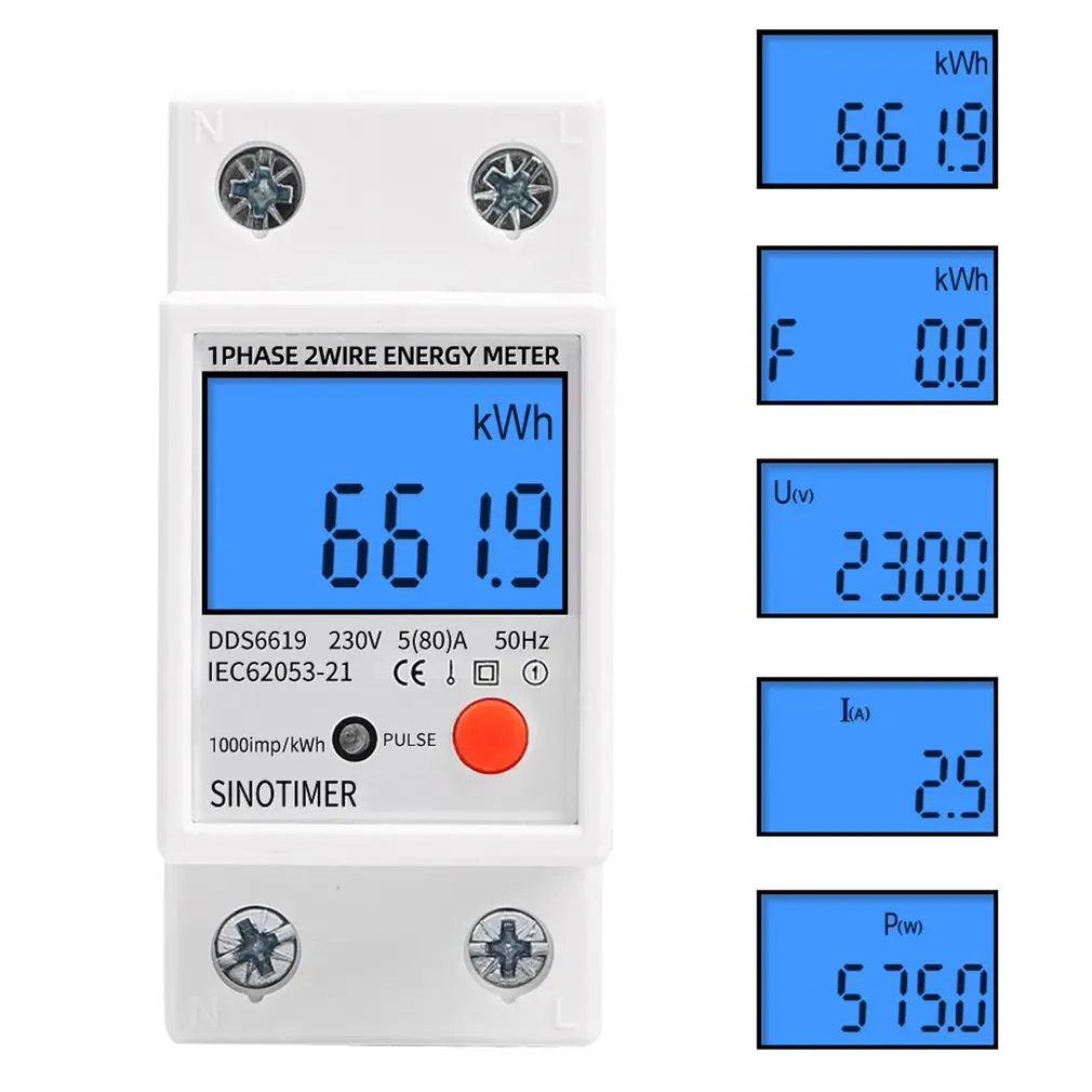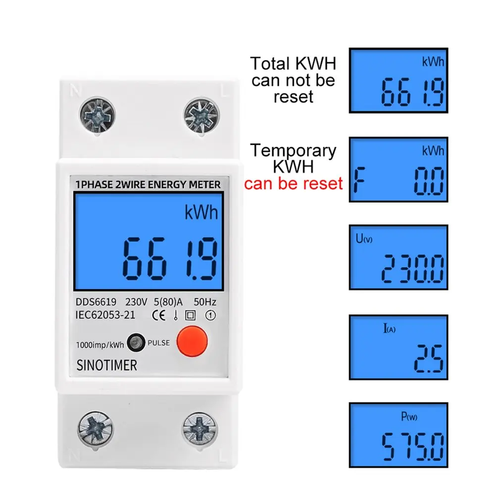 Однофазный счетчик энергии кВтч на Din-рейку с ЖК-дисплеем и цифровой подсветкой, измеритель потребления электроэнергии, ваттметр, электронный сброс нуля 220 В 80 А переменного тока