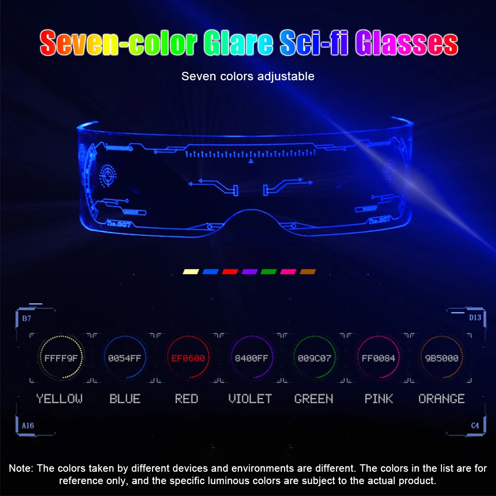 Крутые светильник светящиеся очки, футуристические очки с козырьком, 7 цветов, модные очки с батарейным питанием для вечеринок, фестивалей, представлений