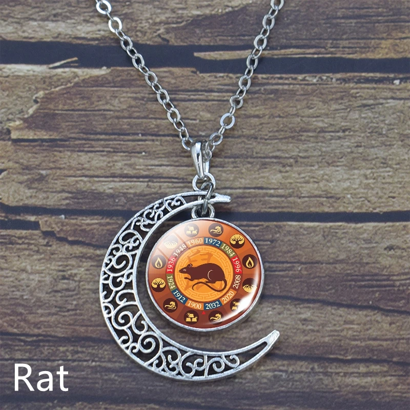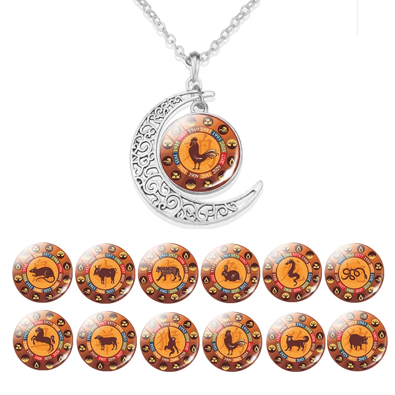 Китайский Зодиак Животное подвеска в виде полумесяца Крыса Бык Тигр кролик дракон змея лошадь козья обезьяна петух собака свинья стеклянная подвеска