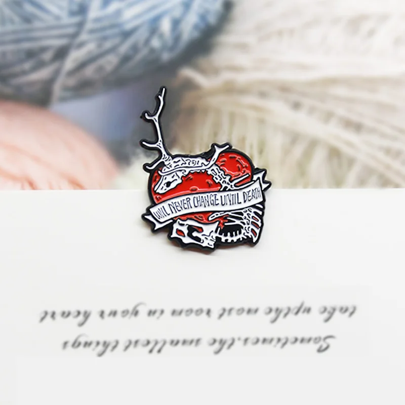 Брошь с эмалью Я тебя люблю, эмалевая брошь с отбеленными косточками в форме сердца, значок на лацкан, ювелирное украшение в подарок на день Святого Валентина, никогда не изменится