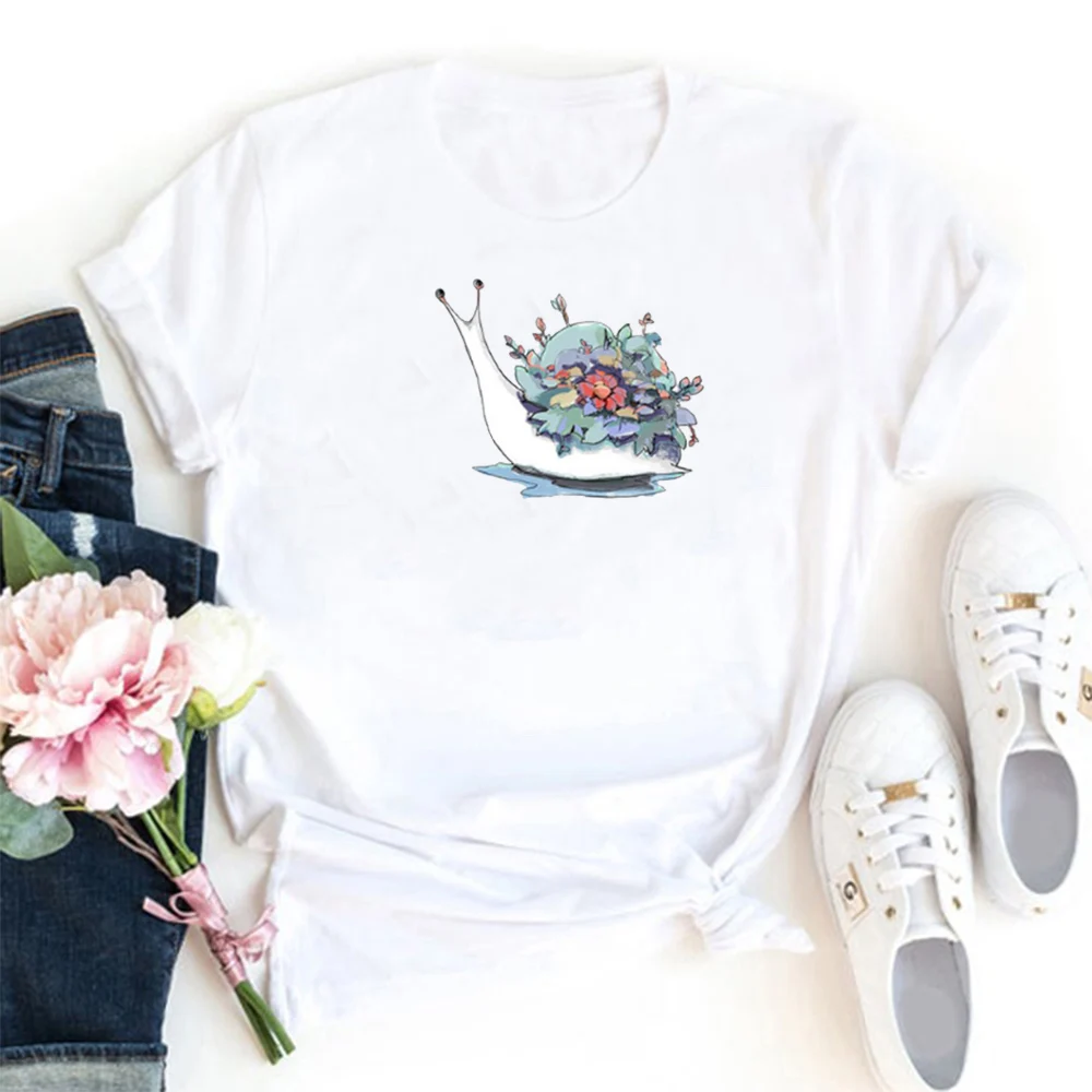 Милые улитки узор для женщин модная футболка с животным принтом Футболки женские футболки с коротким рукавом для женщин Свободные эстетическое Camisetas Mujer