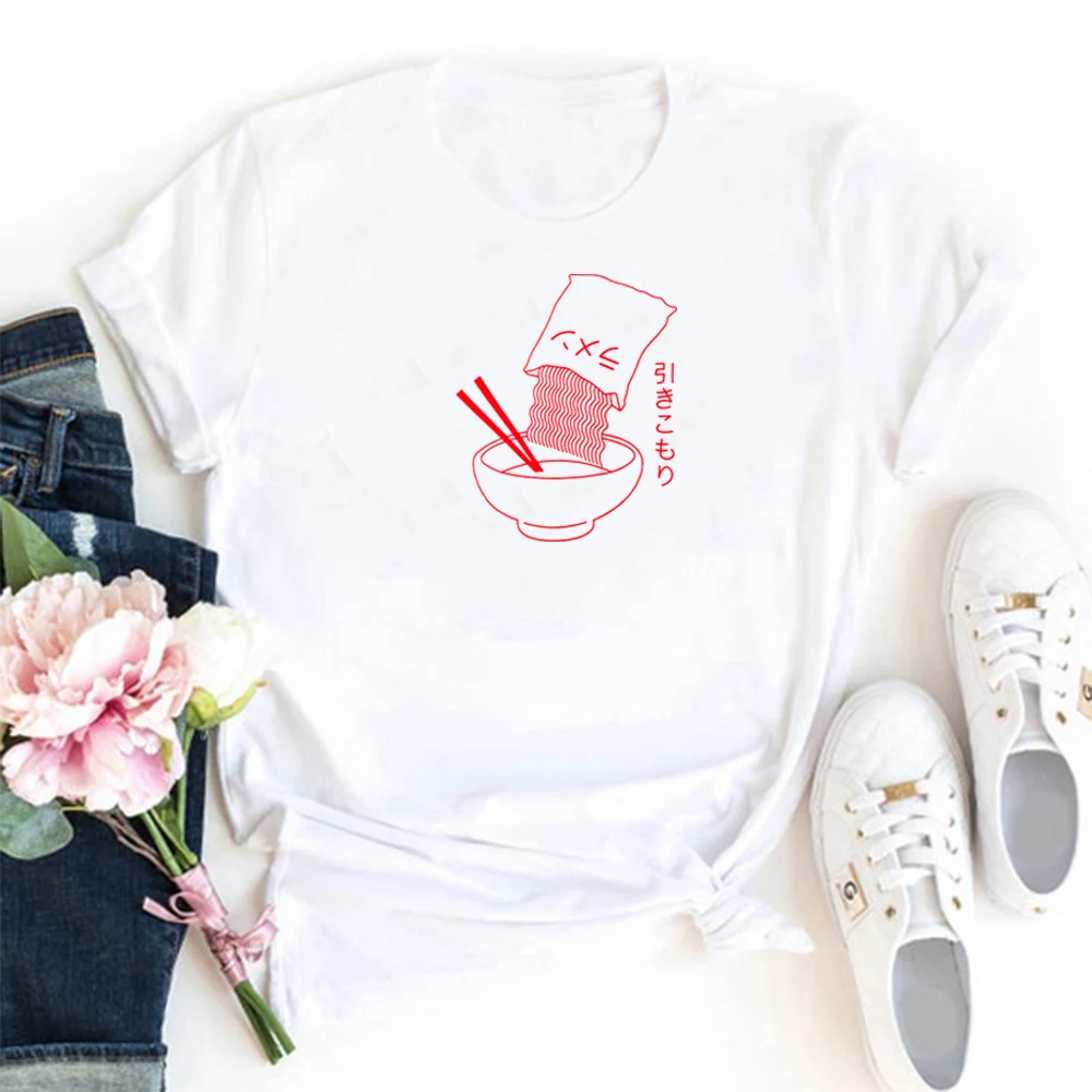 Футболка женская с принтом лапши в Корейском стиле, милая белая рубашка с коротким рукавом, Топ в стиле Харадзюку