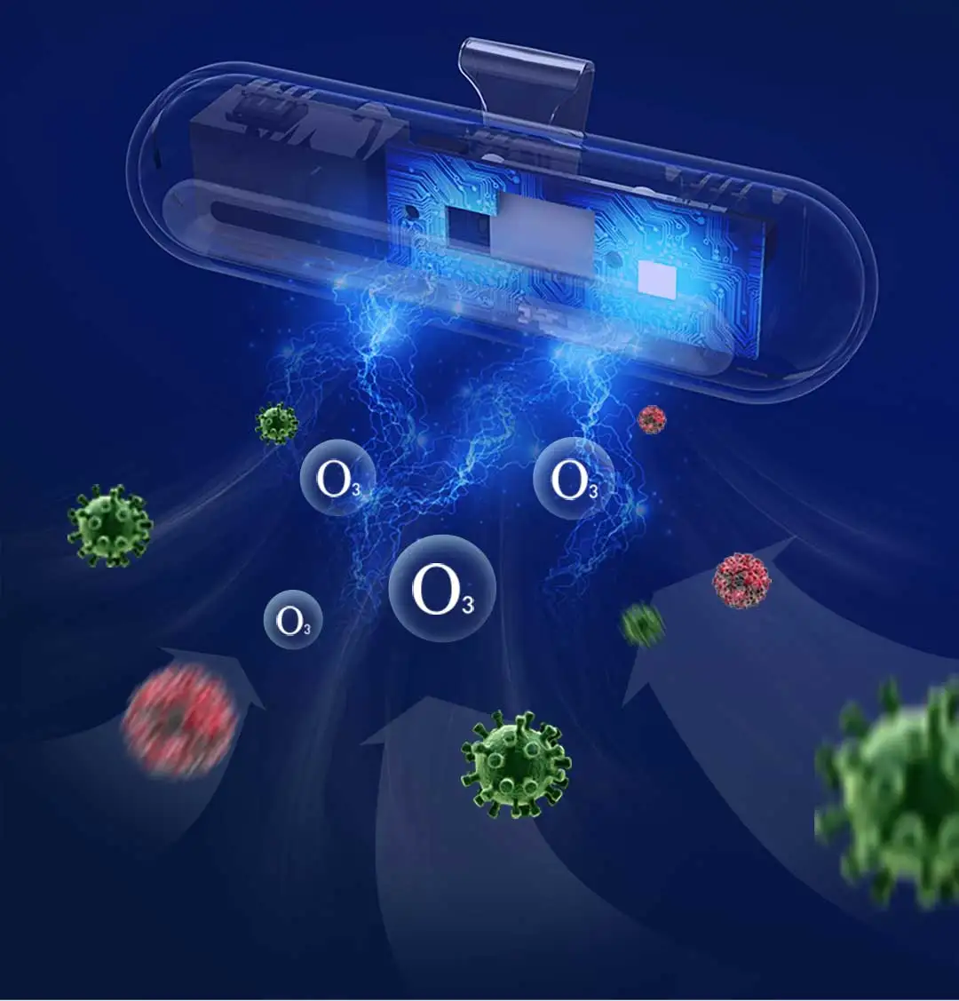 -Холодильник дезодорирует, продлевает сохранение и разлагает Остатки пестицидов-Маленький и компактный, он не занимает много места и может быть подвешен для использования (оснащен пряжкой)-Антифриз и влагостойкий дизайн, можно использовать как минимум до минус 30 градусов-Многоуровневое Использование: запах чистой комнаты, дезодорирующий шкаф и шкаф для обуви, дезодорирует автомобиль, дезинфицирует игрушки и т. д.-Встроенный аккумулятор 800 мАч, зарядка через USB-2 вида режимов клавиш: ① двойной клик: режим дезинфекции глубокой дезодорировки ② Длительное нажатие в течение 2 секунд: режим свежести, дезодорирования и дезинфекции-Срок службы батареи (полная зарядка около 2 часов) ① около 72 часов для глубокого дезодорирующего режима ② около 30 дней для свежести, дезодорирования и дезинфекции