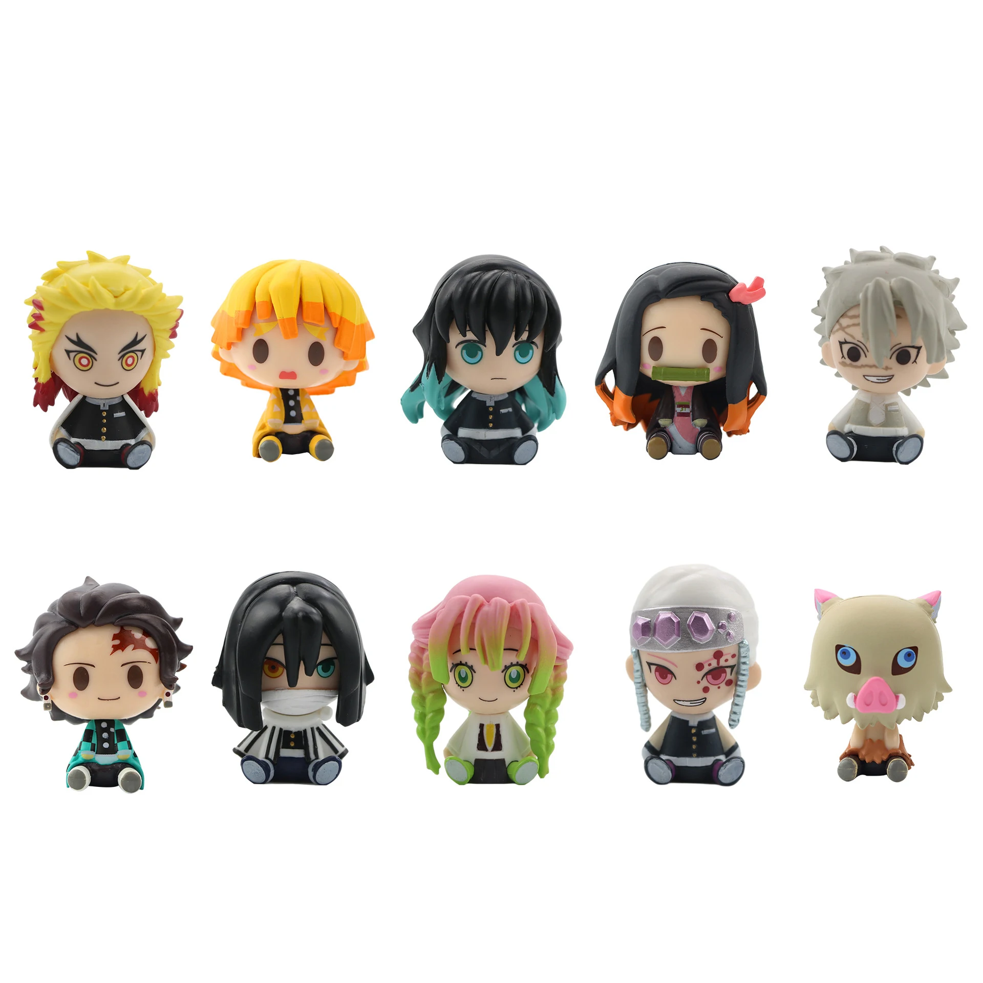 Аниме Demon Slayer kawaii cute Rengoku Tanjirou Nezuko Zenitsu Inosuke Mitsuri Obanai Tengen Muichirou сидя Q модели Фигурки