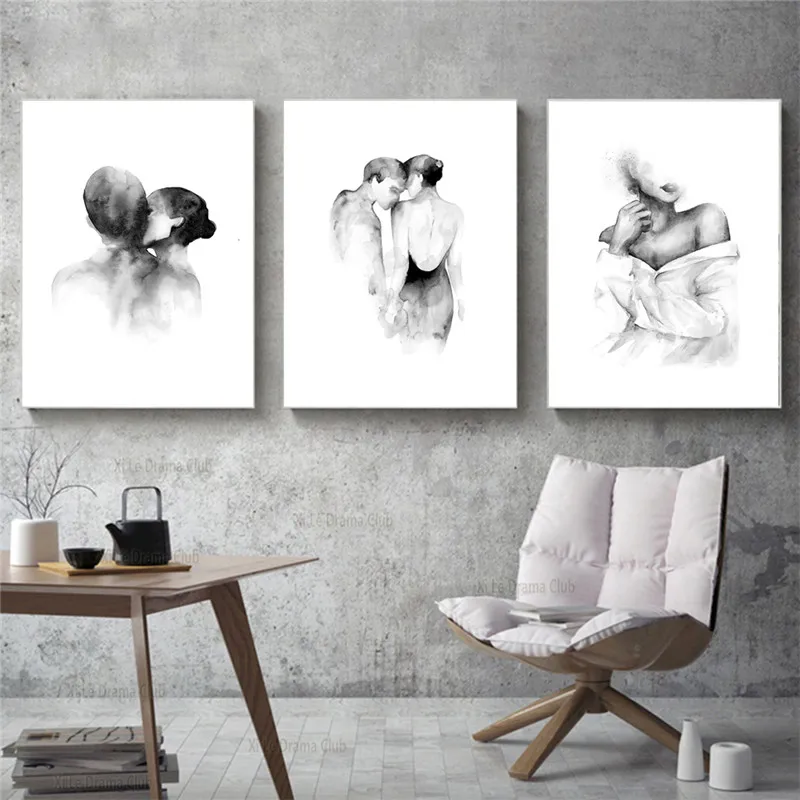 Постер на холсте с абстрактным изображением влюбленных пар, белого ...