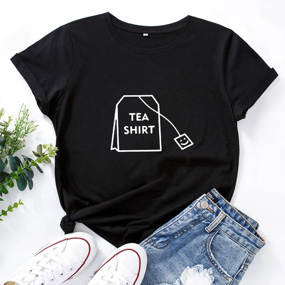 Чай, футболка с надписью, Футболка женская, с о-образным вырезом, хлопковая футболка с короткими рукавами для женщин футболка персонализированная футболка для женщин с черный, белый цвет с буквенным принтом
