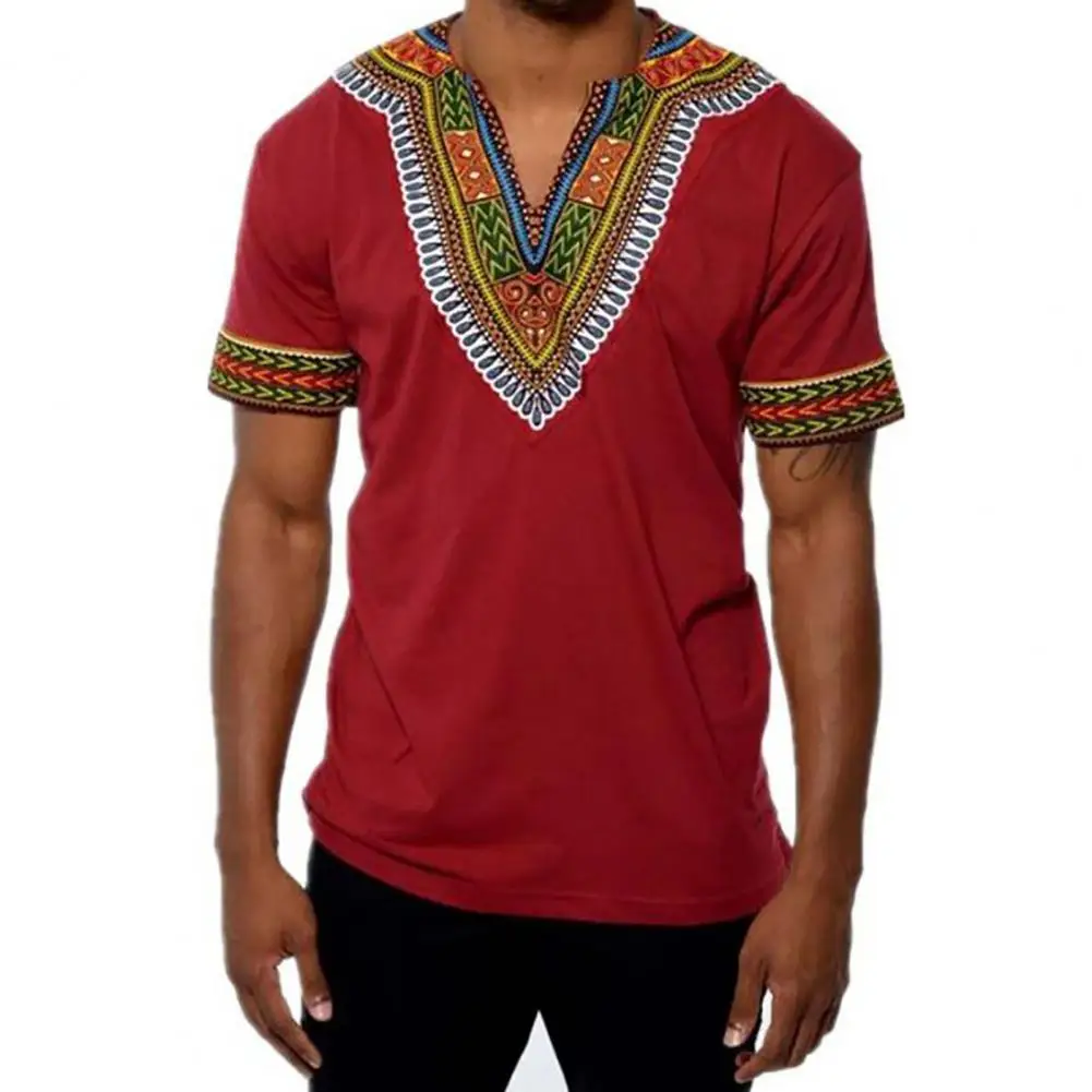 Традиционная африканская одежда для мужчин, летняя футболка Дашики, футболка с коротким рукавом и V-образным вырезом, Мужская Этническая африканская одежда