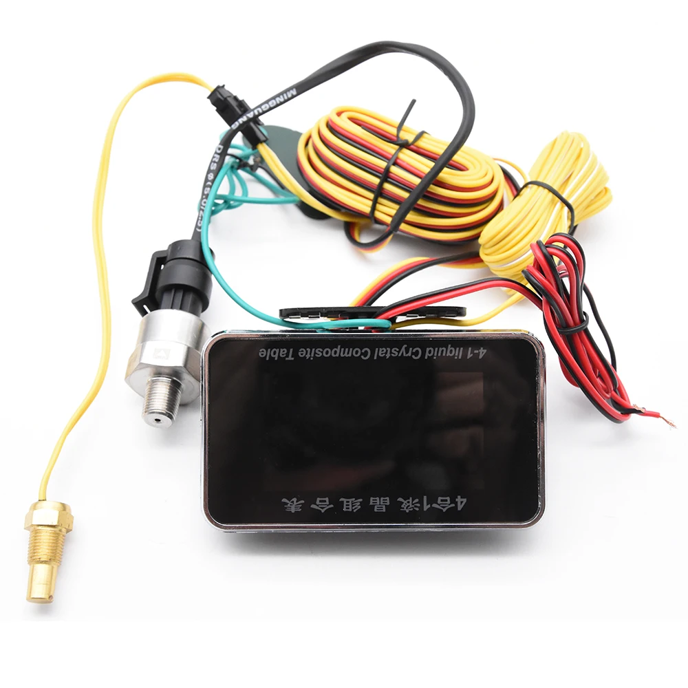 Автомобильный цифровой вольтметр 4 в 1, ЖК-дисплей, измеритель давления масла, топлива, воды, температуры 18 NPT, универсальная приборная панель с датчиком 12 В24 В