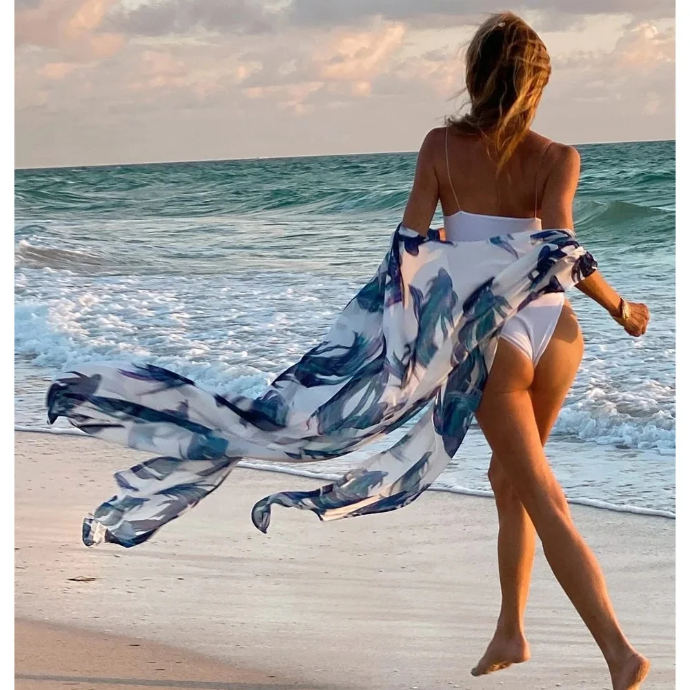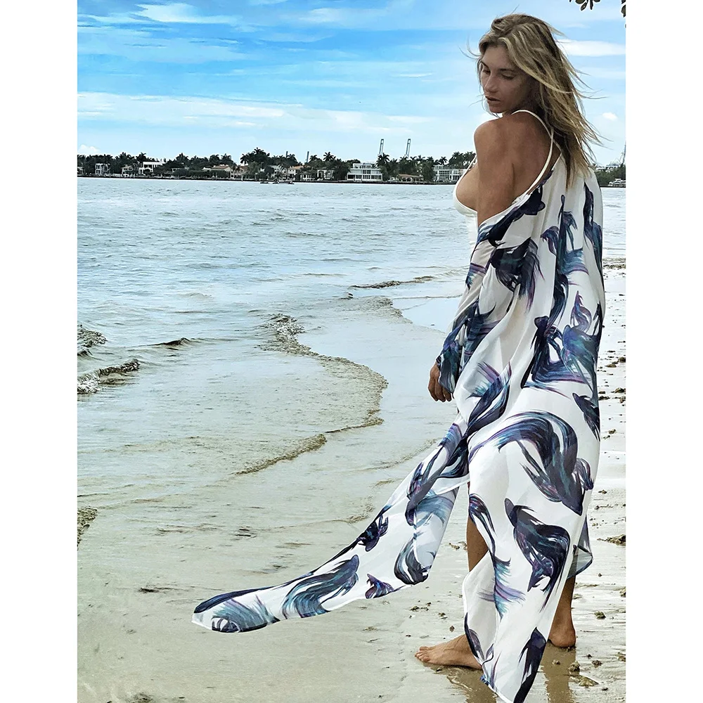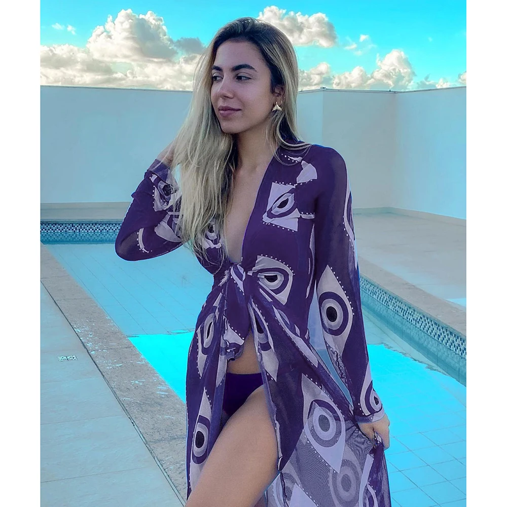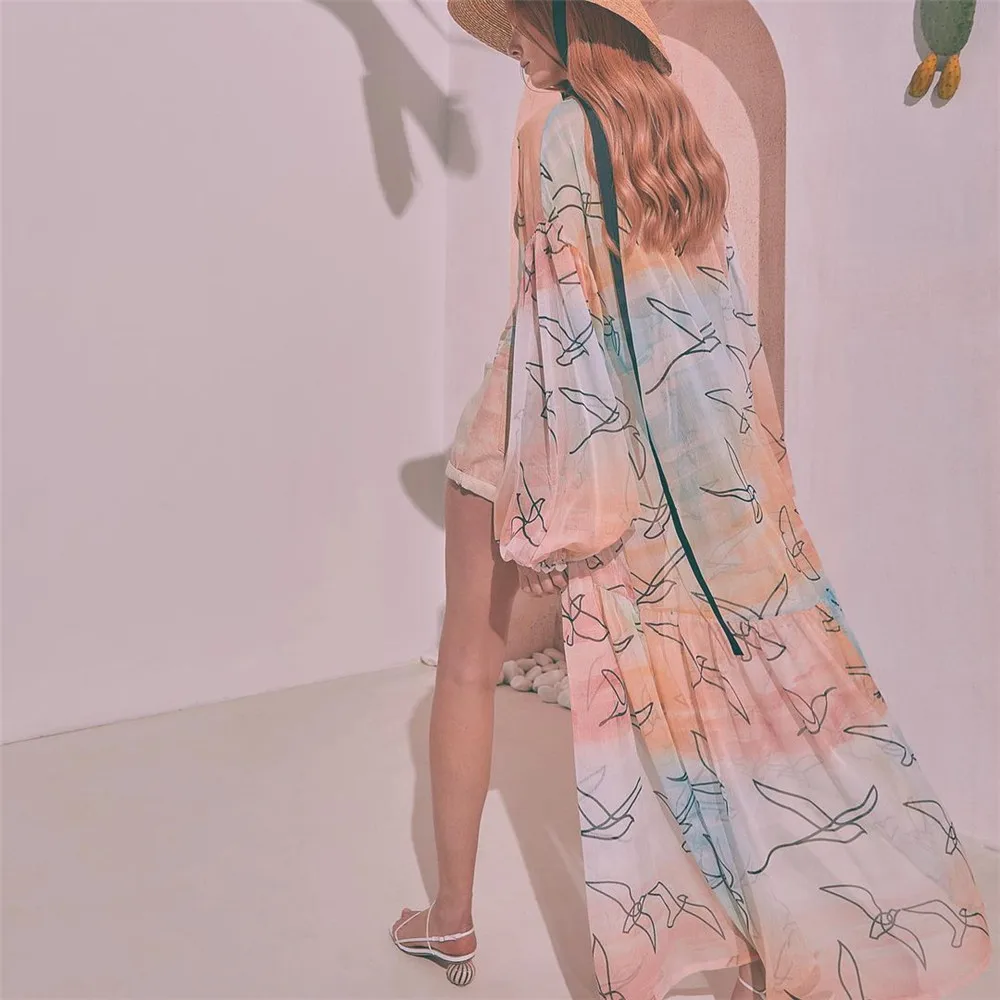 2021 пляжное платье, летний купальник с принтом, женская сексуальная накидка, однотонная длинная туника, купальник с пузырьковым рукавом и поясом, купальный костюм