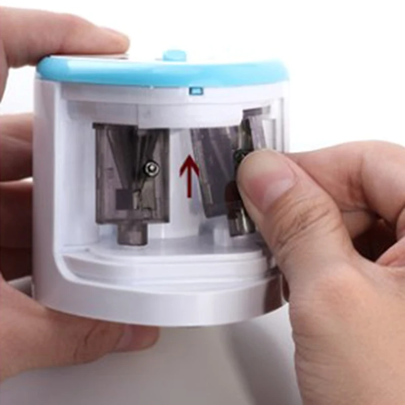 Автоматическая точилка для карандашей, школьные принадлежности, электрическая точилка для карандашей с двумя отверстиями, автоматический инструмент для заточки карандашей для студентов