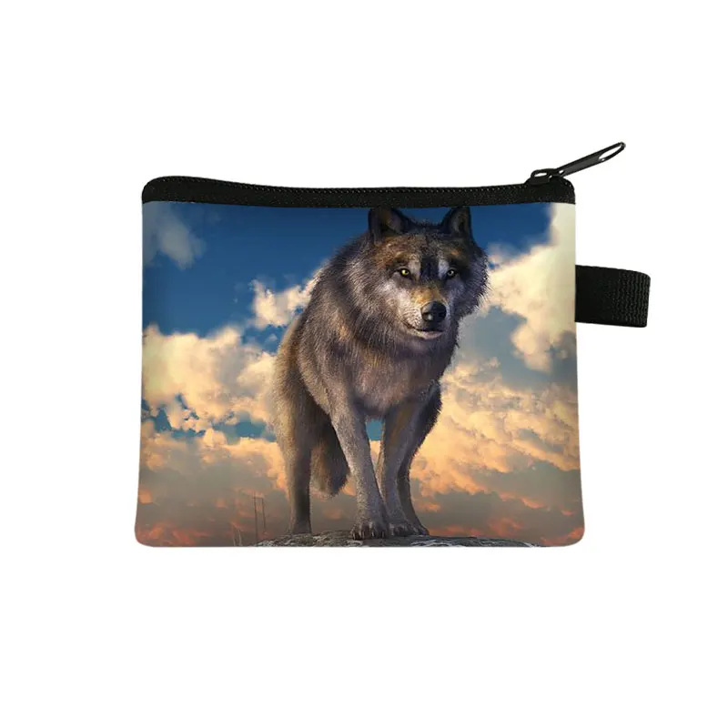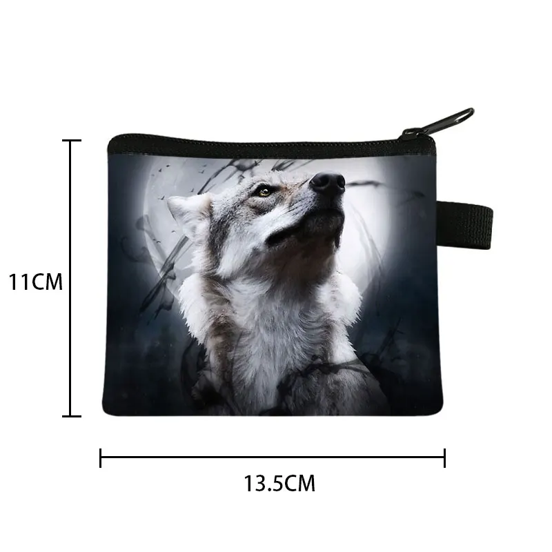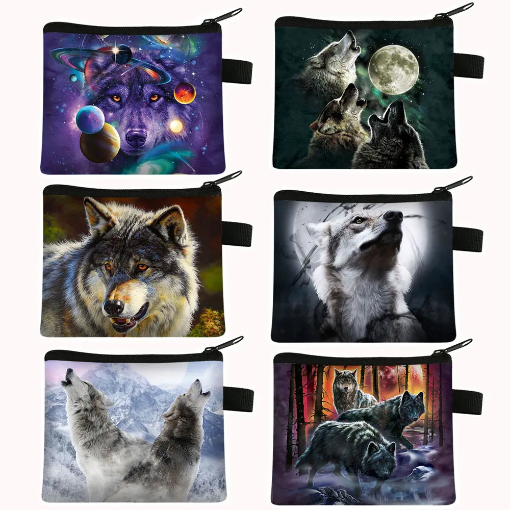 Крутой маленький кошелек для монет с изображением дикого волка, кош...