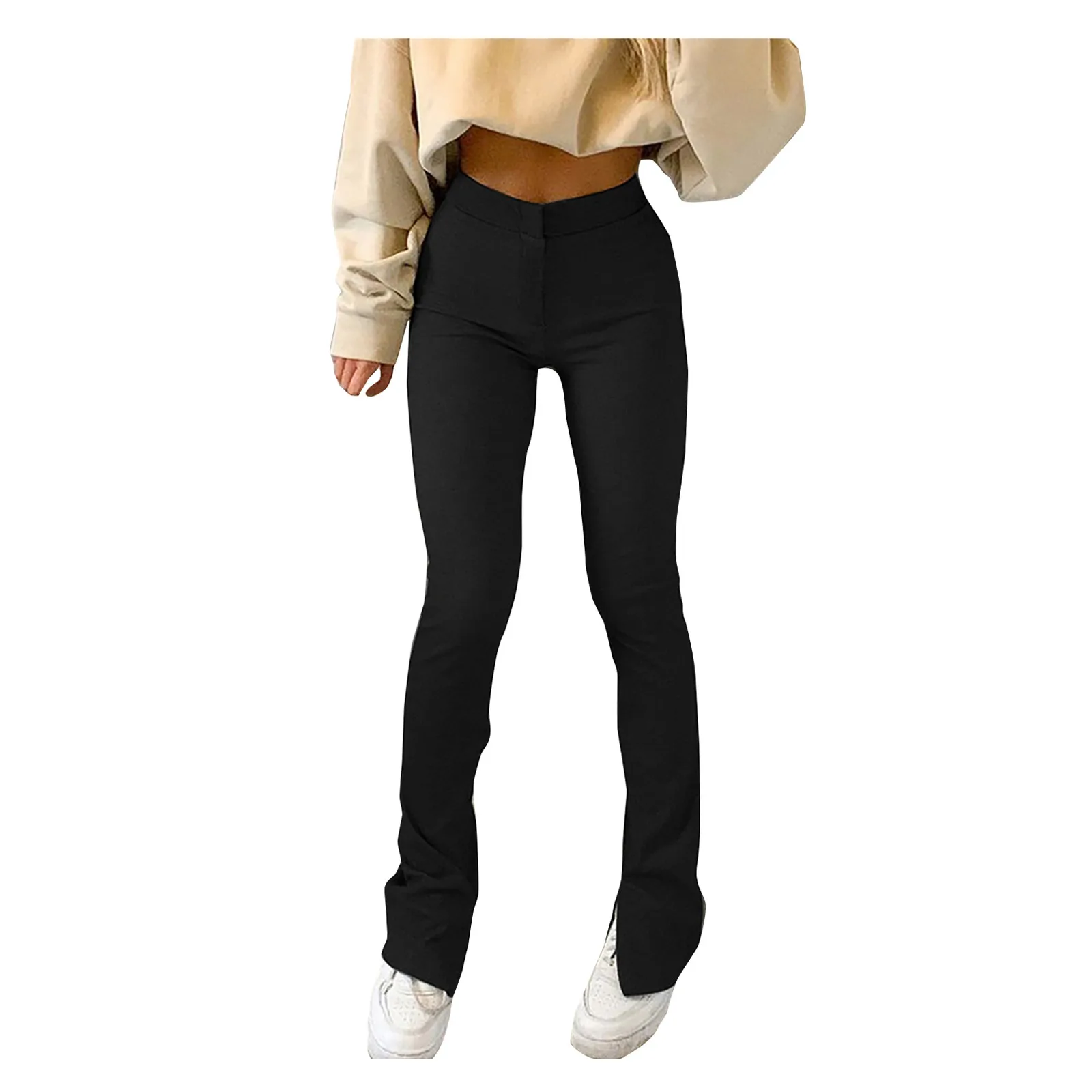 Брюки Женские однотонные повседневные с завышенной талией, облегающие спортивные штаны с разрезом, простые повседневные Прямые Штаны