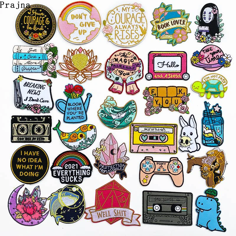 Мультяшные нашивки Prajna с надписями на одежду, термоклейкие нашив...